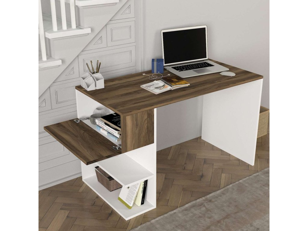 HONZO psací stůl, bílá/ořech