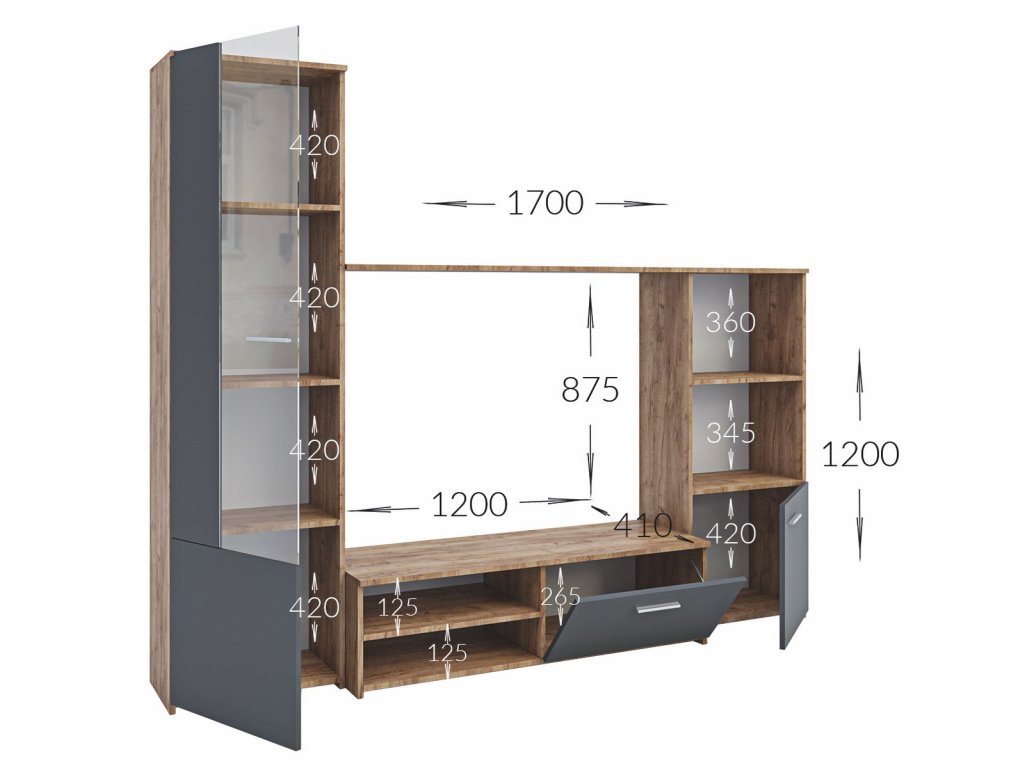 HUGO obývací stěna, šedý grafit/dub craft tabaco