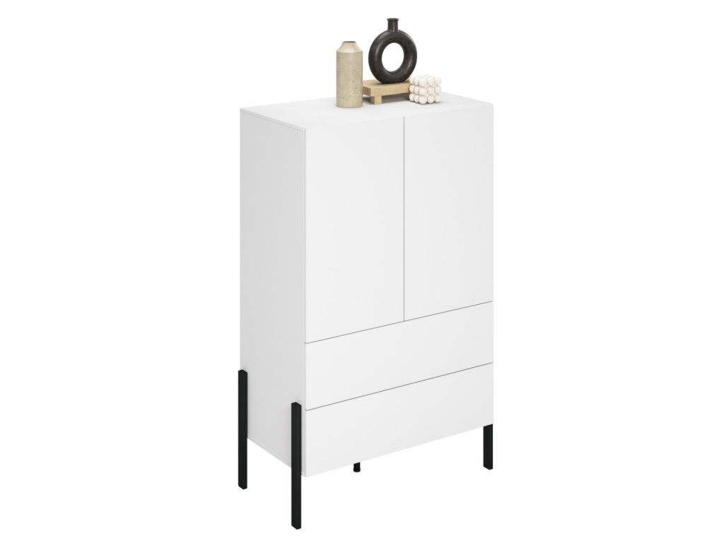 Vysoká komoda IKONA je ideálním doplňkem do obývacího pokoje i ložnice. Díky svému modernímu designu a praktickému uspořádání nabízí dostatek úložného prostoru pro vaše oblečení, dokumenty nebo další potřeby. Kombinace dvou zásuvek a plných dvířek zajišťuje přehlednost i organizaci.