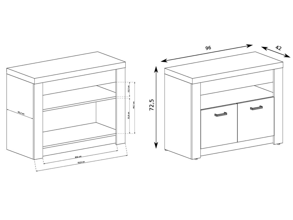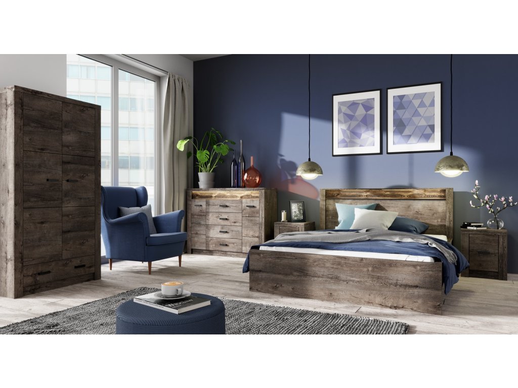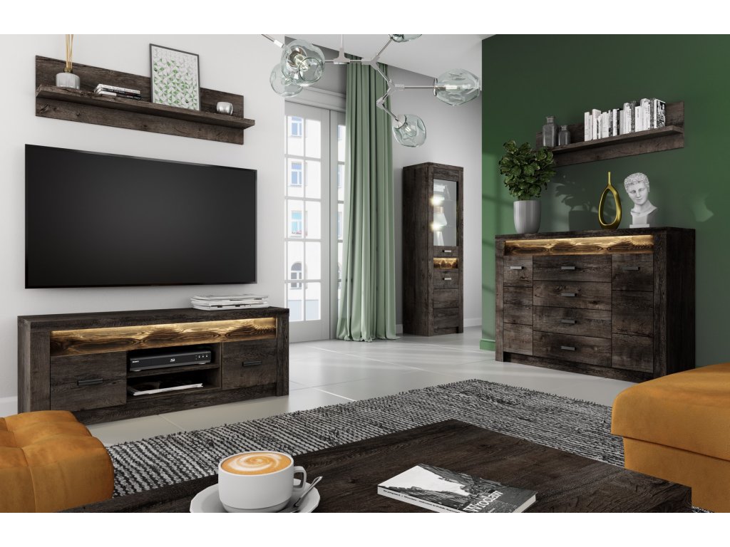 Komoda 2-dveřová. Systém je exkluzivní kolekce navržena v moderním duchu. Vsazením LED osvětlení do ozdobné rýhované lišty, které najdete v naší další nabídce k dokoupení, je zvýrazněn rustikální vzhled masivního dřeva. Celá řada se vyznačuje elegancí a jednoduchými tvary, které zaručují plné využití prostoru. Nábytek je vyroben z kvalitního lamina s ABS hrany ( 0,5-0,8 mm ). Barevné provedení jasan tmavý. Dodáváme v demontovaném stavu.Doplňkové parametry