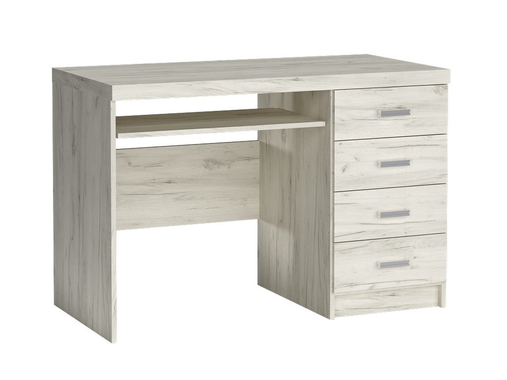 Psací stůl se 4 zásuvkami ze sektorové řady. Systém je exkluzivní kolekce navržena v moderním duchu. Celá řada se vyznačuje elegancí a jednoduchými tvary, které zaručují plné využití prostoru. Nábytek je vyroben z kvalitního lamina s ABS hrany ( 0,5-0,8 mm ). Barevné provedení jasan bílý. Dodáváme v demontovaném stavu.Doplňkové parametry