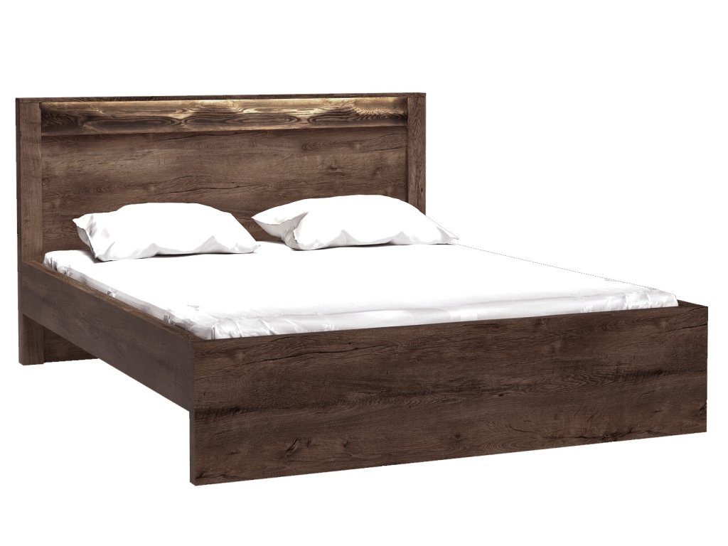 Postel 160 cm. Laťový rošt je v ceně, matraci je potřeba dokoupit. Doporučujeme matraci 160x200 nebo dvě 80x200 cm. Doporučujeme dokoupit zásuvku pod postel. Výška postele u hlavy je 100 cm, u nohou 40 cm, výška od země do boku postele je 20 cm, výška roštu od země cca 32 cm. Systém je exkluzivní kolekce navržena v moderním duchu. Vsazením LED osvětlení do ozdobné rýhované lišty, které najdete v naší další nabídce k dokoupení, je zvýrazněn rustikální vzhled masivního dřeva. Celá řada se vyznačuje elegancí a jednoduchými tvary, které zaručují plné využití prostoru. Nábytek je vyroben z kvalitního lamina s ABS hrany ( 0,5-0,8 mm ). Barevné provedení jasan tmavý. Dodáváme v demontovaném stavu.Doplňkové parametry