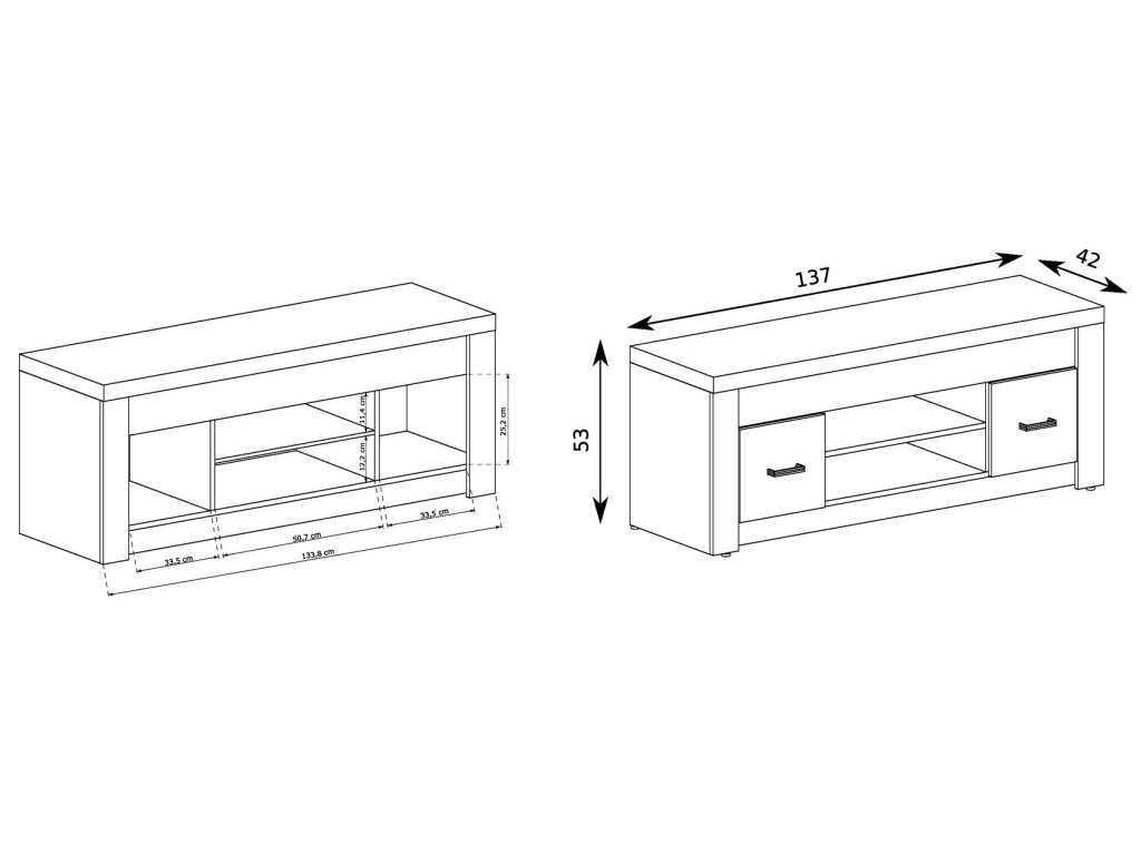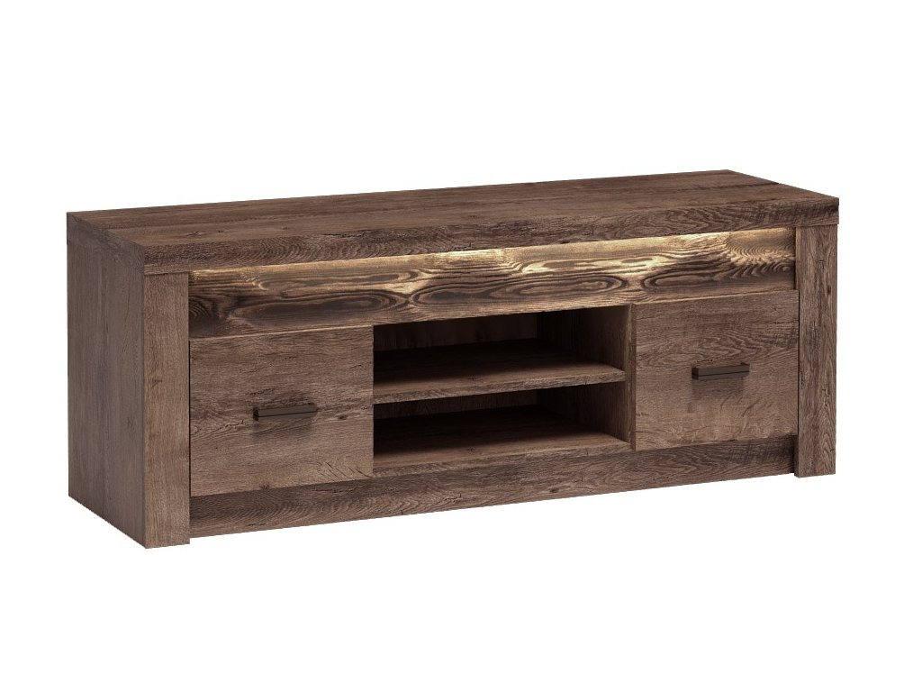 Televizní stolek se 2 dvířky otvírané do stran. Systém je exkluzivní kolekce navržena v moderním duchu. Vsazením LED osvětlení do ozdobné rýhované lišty, které najdete v naší další nabídce k dokoupení, je zvýrazněn rustikální vzhled masivního dřeva. Celá řada se vyznačuje elegancí a jednoduchými tvary, které zaručují plné využití prostoru. Nábytek je vyroben z kvalitního lamina s ABS hrany ( 0,5-0,8 mm ). Barevné provedení jasan tmavý. Dodáváme v demontovaném stavu.Doplňkové parametry