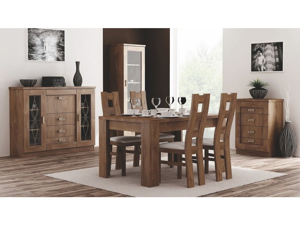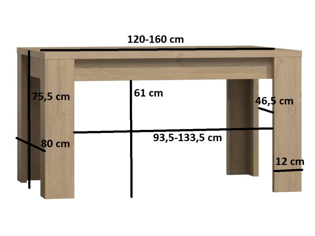 Jídelní stůl je rozkládací, před rozložením má 120 x 80 cm, po rozložení 160 x 80 cm. Systém je exkluzivní kolekce navržena v moderním duchu. Celá řada se vyznačuje elegancí a jednoduchými tvary, které zaručují plné využití prostoru. Nábytek je vyroben z kvalitního lamina s ABS hrany ( 0,5-0,8 mm ). Barevné provedení dub lefkas. Dodáváme v demontovaném stavu.