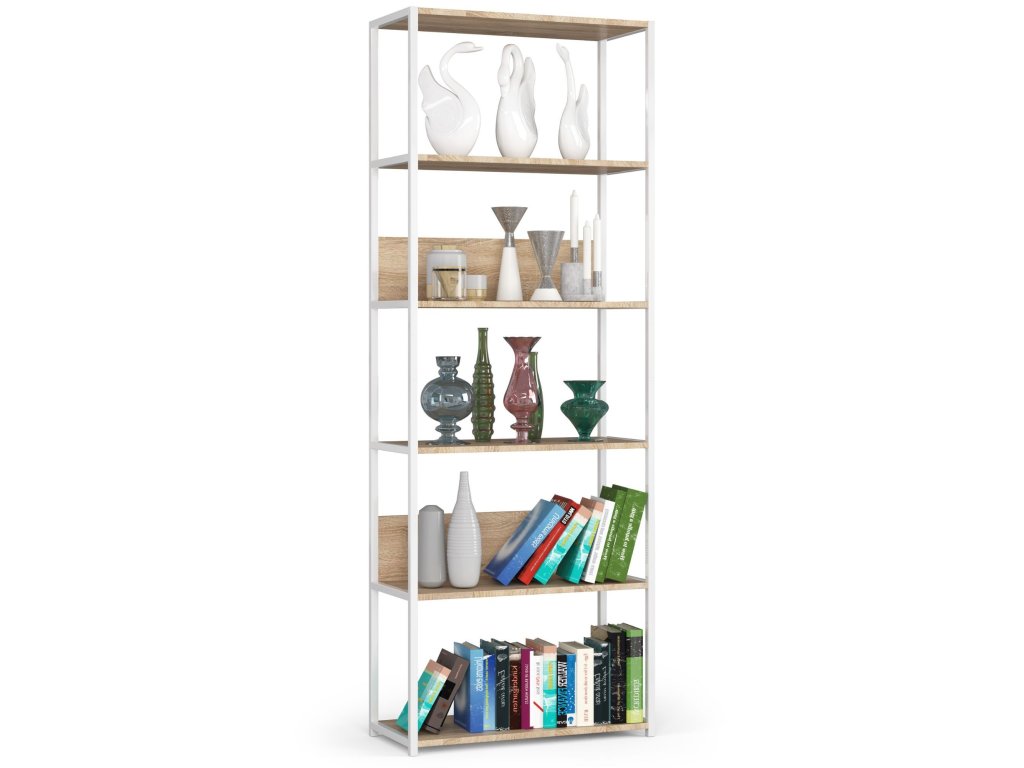- Barva: Svěží bílá v kontrastu s teplým dubem Sonoma dodává regálu luxusní vzhled.