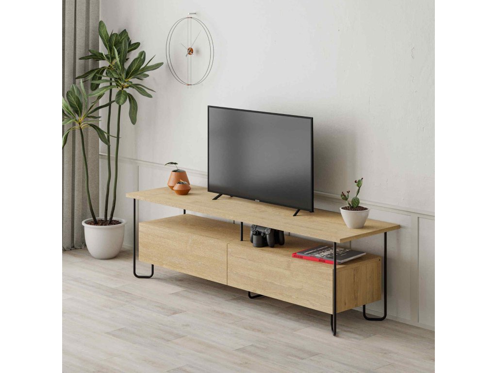 TV stolek YOSHI: Moderní loftový styl v teplém dubovém provedení