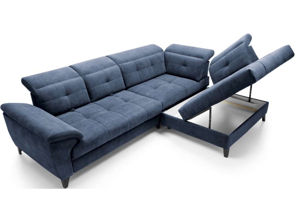 Rohová rozkládací sedačka IRENE – Váš nový středobod pohodlí a designu. Personalizujte svůj prostor výběrem modré barvy a vytvořte si dokonalý prostor pro relaxaci a společenské setkání.