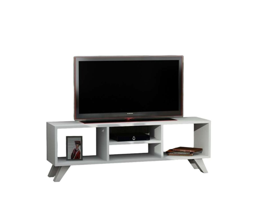 Objevte JAREP, TV stolek, který je díky svému minimalistickému designu a čisté bílé barvě ideální pro moderní obývací pokoje. Tento kus nábytku poskytuje prostor pro uložení vašich multimediálních zařízení a dalších předmětů, a to vše bez zbytečných komplikací díky svému otevřenému designu.