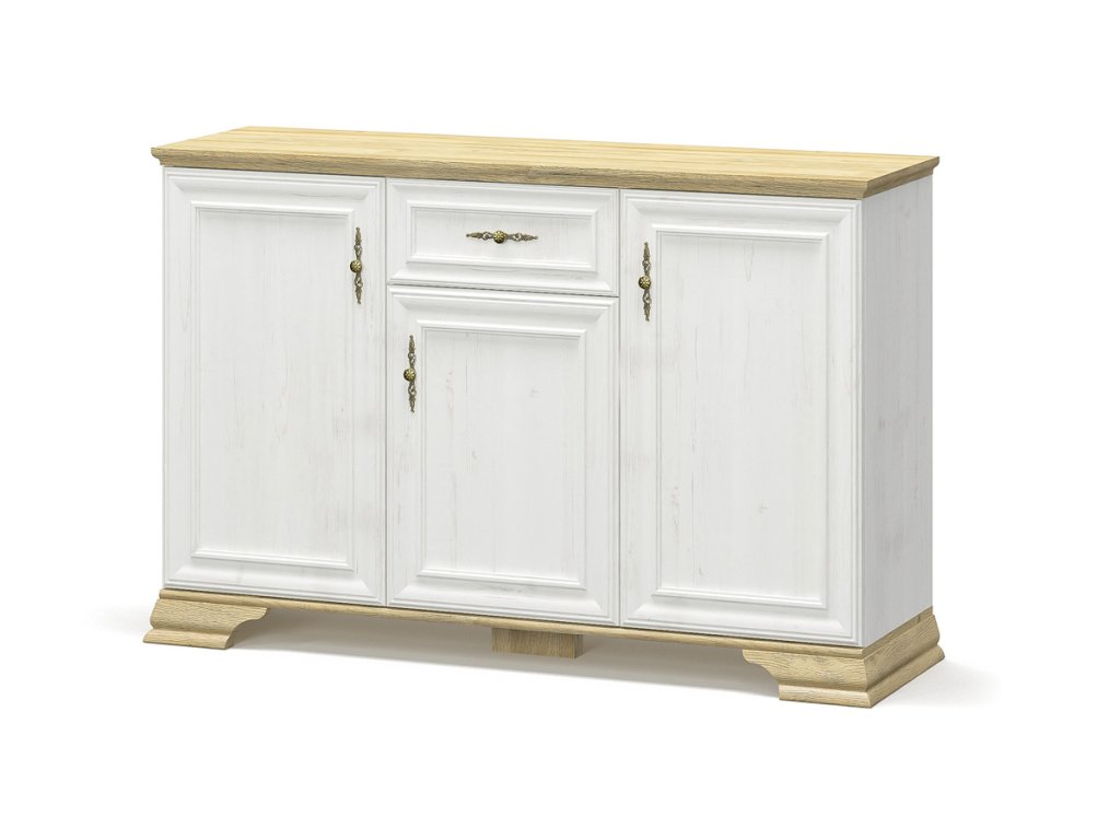 JARMANKA je sektorový prvek s rustikálním nádechem. Jeho stylové provedení je podbarveno kombinací kontrastních barev borovice anderson a dub zlatý. Světlé barvy rozjasní prostor a opticky jej zvětší. Efektní úchyty s ornamentem ve zlatém barevném provedení, dodávají nábytku šmrnc a eleganci. Elegantní oblé hrany naleznete jak na stylovém provedení nožiček tak i na dvířkách a horní zakončovací liště. Komoda nabízí úložný prostor rozdělený na více částí. Ve všech třech částech za dvířky naleznete 1 poličku. Středová – horní část nabízí praktický šuplík. Nábytek je vyroben z kvalitní LTD desky, jejíž nenáročnost na údržbu ocení každý majitel. Rozměry (š/v/h): 137,6 x 88,7 x 39 cm. V naší nabídce naleznete i další prvky sektoru JARMANKA, ze kterých si umíte poskládat stylový obývací pokoj či efektní ložnici. Dodáváme v demontu.Doplňkové parametry