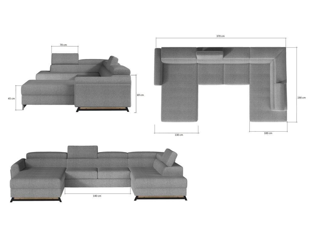 - ŠxHxV:< /strong> 370 cm x 190 cm x 55-98 cm