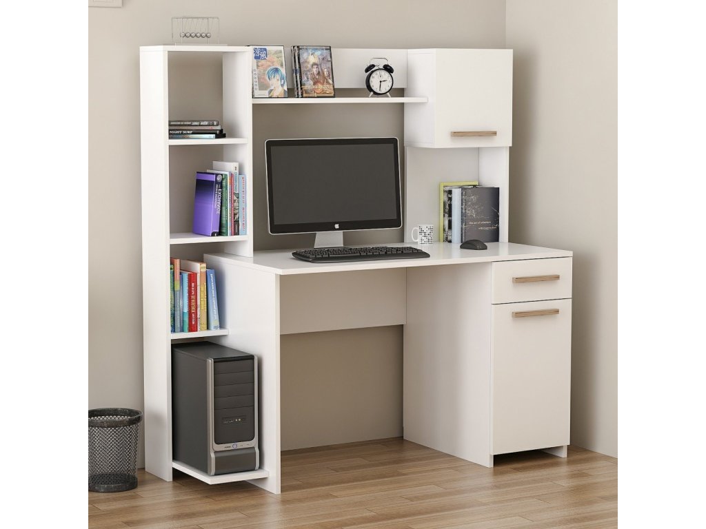 JUDGE pracovní stůl s regálem, bílá
