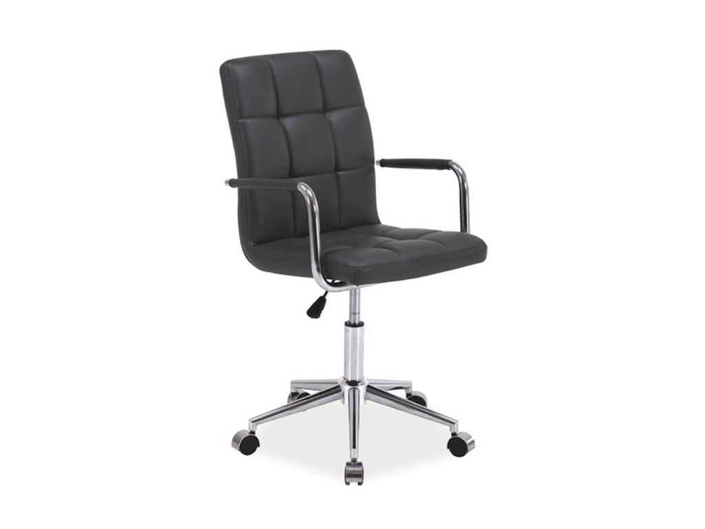 Křeslo je čalouněno kvalitní eko-kůží v šedé barvě. Disponuje pochromovaným křížem. Kolečka křesla jsou vyrobena z plastu. Nosnost židle: 100 kg.