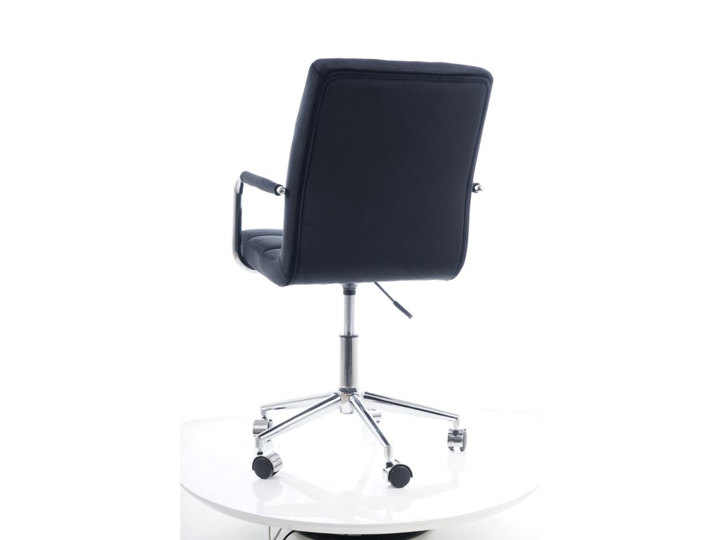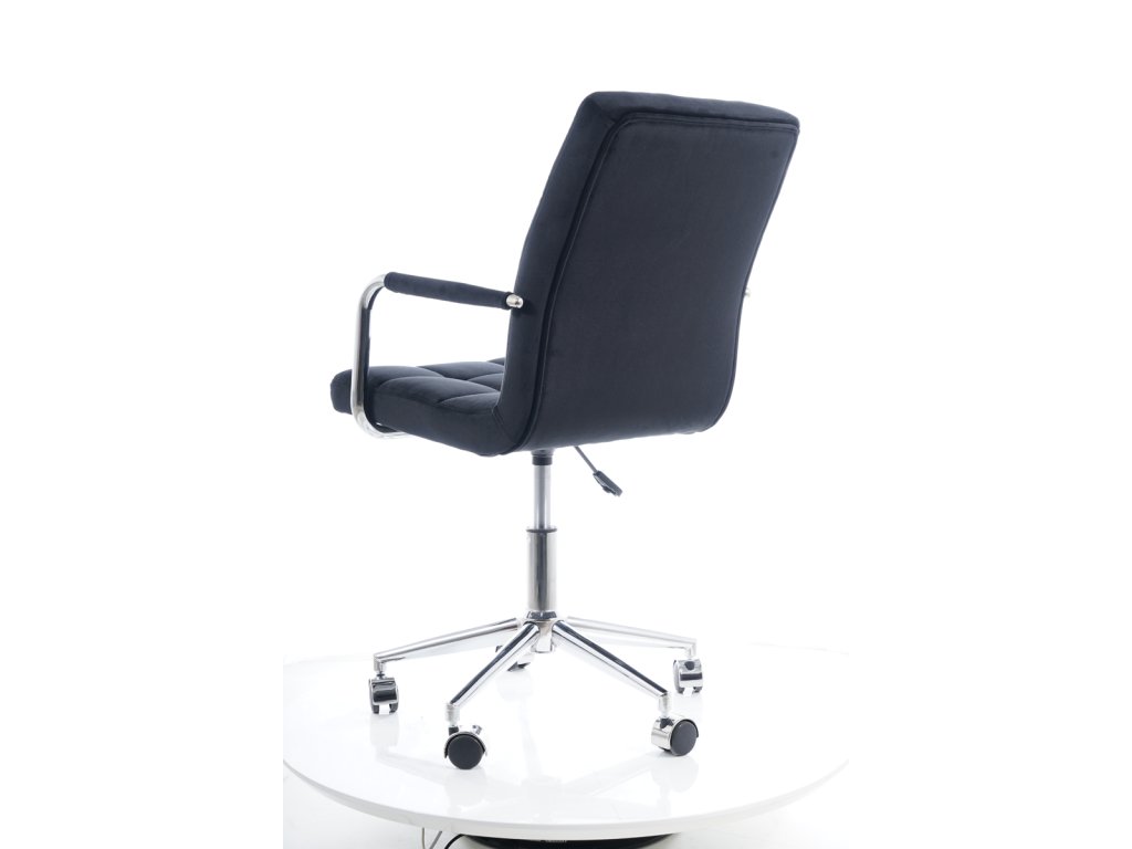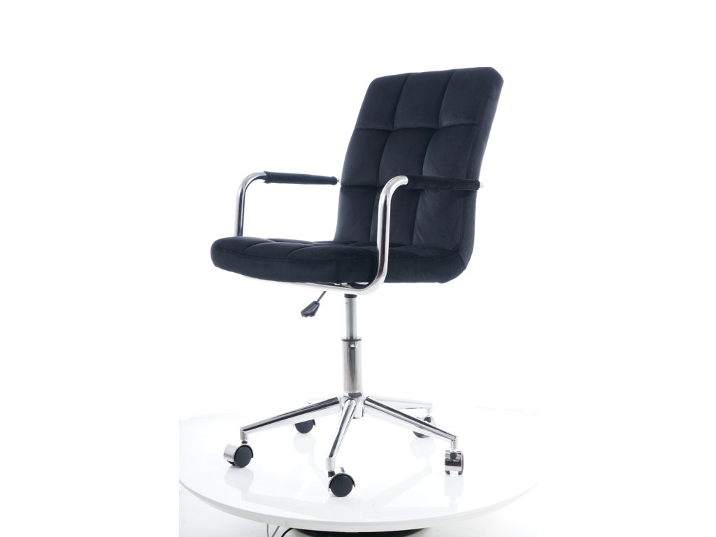 Křeslo je čalouněno kvalitní sametovou látkou BLUVEL 68 ve žluté barvě. Disponuje pochromovaným nosným křížem. Kolečka křesla jsou vyrobena z plastu.