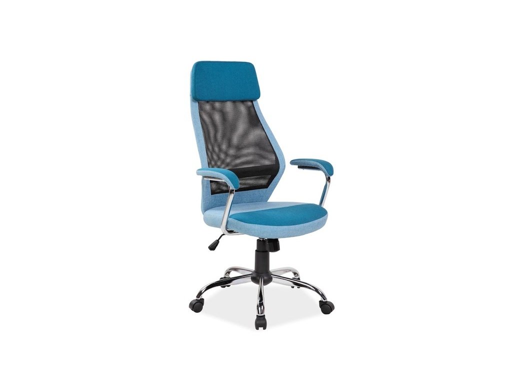 K-336 je otočné kancelářské křeslo v atraktivním provedení. Je vhodné do každé pracovny, kanceláře či studentského pokoje. Křeslo je výškově nastavitelné. Má mechanismus TILT. Je čalouněno kvalitní látkou ve spojení se síťkou. Barevné provedení: modrá, černá. Křeslo disponuje pochromovaným nosným křížem. Kolečka jsou vyrobena z plastu. Rozměry: Výška: 117-127 cm Výška sezení: 47 - 57 cm Šířka: 65 cm Hloubka: 50 cm Nosnost křesla: 120 kg. Dodáváme v demontovaném stavu.Doplňkové parametry
