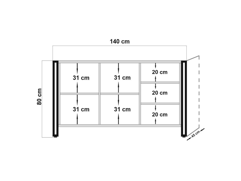 Komoda KAI je stylovým a praktickým doplňkem do vašeho obývacího pokoje. S moderním industriálním designem, kombinací borovicového dekoru a černých kovových prvků, přináší do interiéru nadčasový vzhled a funkčnost.