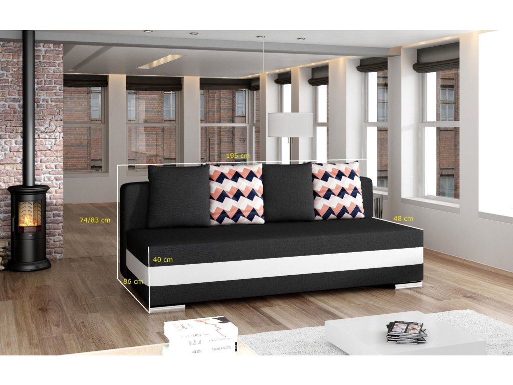 Rozměry pohovky (ŠxVxH): 195 x 83 x 86 cm. Výška sedáku je 40 cm, hloubka 48 cm.