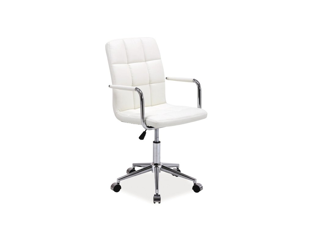 Moderní kancelářské křeslo K-022 s prošívaným sedákem a zádovou opěrkou. Sedák i opěrka jsou potaženy bílou eko-kůží. Dostupné iv dalších barvách. Nosný kříž je pochromovaný. Vhodné do studentského pokoje či pracovny. Dodáváno v demontu. Rozměry křesla: Celková výška křesla: 87-97 cm Výška sezení: 45-55 cm Hloubka sedáku: 40 cm Šířka sedáku: 45 cm