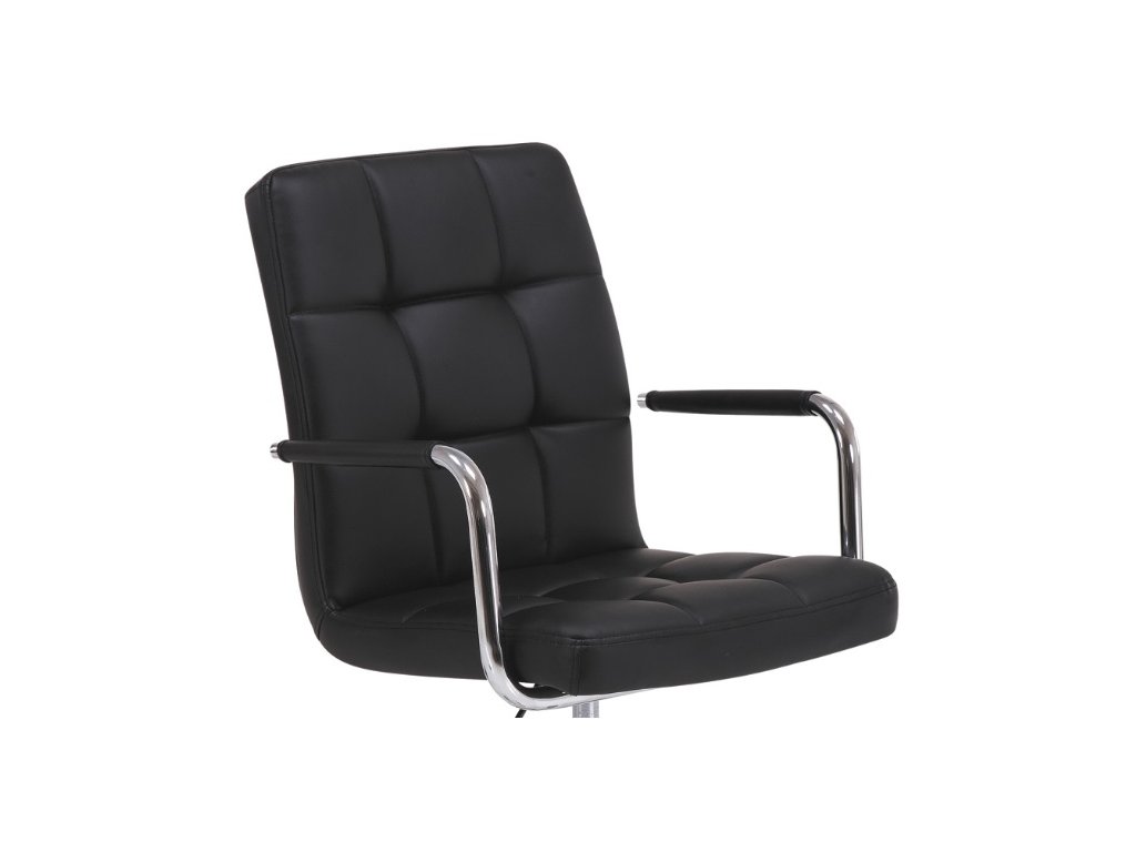 Moderní kancelářské křeslo K-022 s prošívaným sedákem a zádovou opěrkou. Sedák i opěrka jsou potaženy černou eko-kůží. Dostupné také v růžové barvě. Nosný kříž je pochromovaný. Vhodné do studentského pokoje či pracovny. Dodáváno v demontu. Rozměry křesla: Celková výška křesla: 87-97 cm Výška sezení: 45-55 cm Hloubka sedáku: 40 cm Šířka sedáku: 45 cmDoplňkové parametry