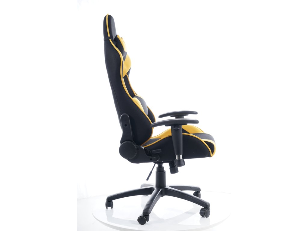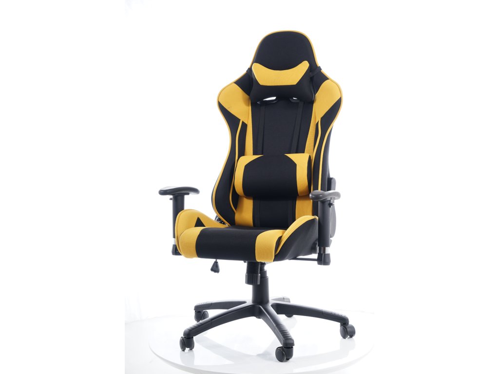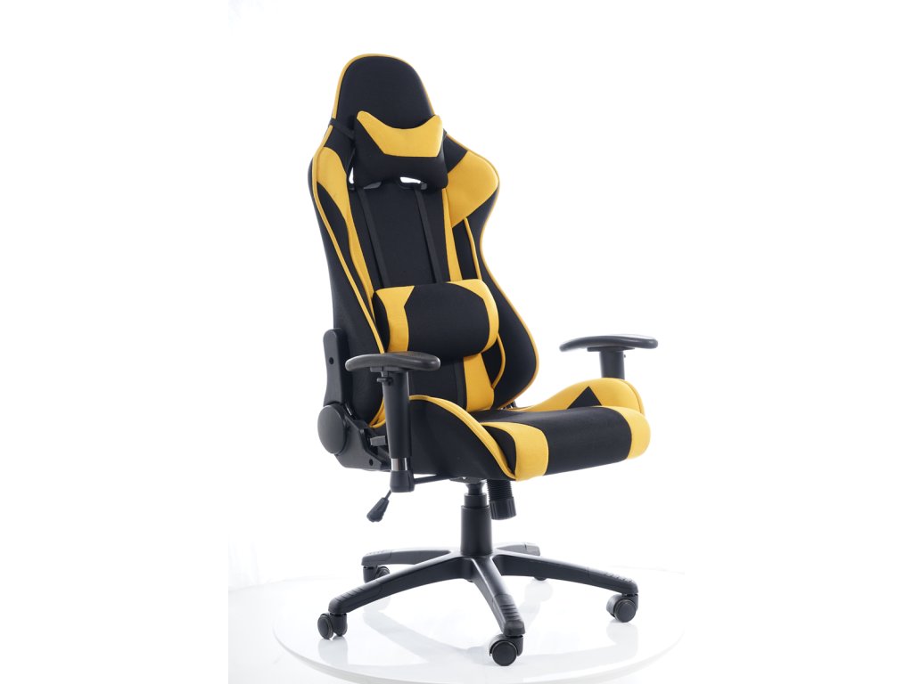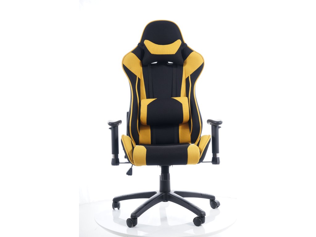 Oblíbené kancelářské křeslo RAVID černo-žluté s přidanou opěrkou hlavy a zádovou opěrkou je křeslem, které zaručuje potřebnou oporu a vysoké pohodlí při sezení. Sedák i opěrka jsou potaženy kvalitní látkou ve žluto-černé barevné kombinaci. Křeslo je dostupné také v dalších barvách. Křeslo disponuje mechanismem TILT, díky kterému si můžete jednoduše nastavit požadovanou výšku sezení, správnou polohu opěrek i sedáku. I područky křesla jsou nastavitelné. Nosný kříž křesla je vyroben z odolného plastu v černé barvě. Kola jsou vyrobena z gumy a tedy vhodná i pro vyšší zátěž. Křeslo lze umístit do pracovny i do studentského pokoje. Rozměry křesla: Celková výška křesla: 127 - 135 cm Výška sezení: 44 - 52 cm Hloubka sedáku: 49 cm Šířka sedáku: 70 cm Nosnost křesla je 140 kg. Dodáváno v demontu v jednom kartonovém obalu.Doplňkové parametry