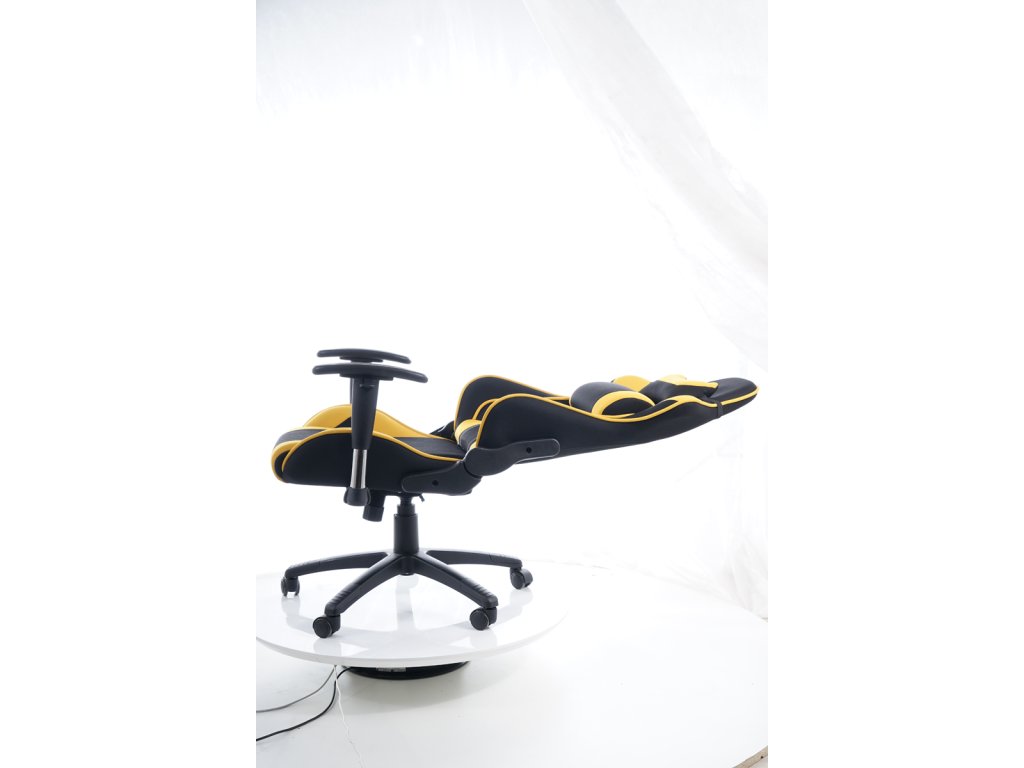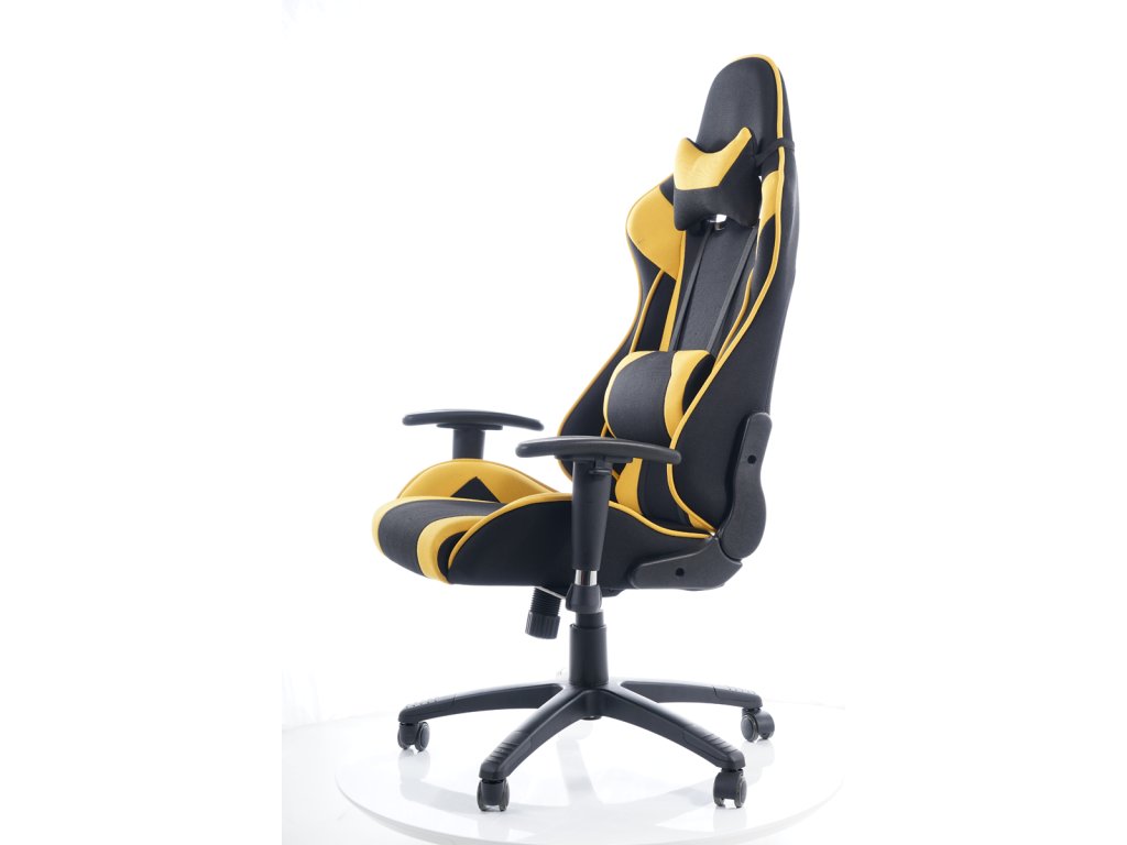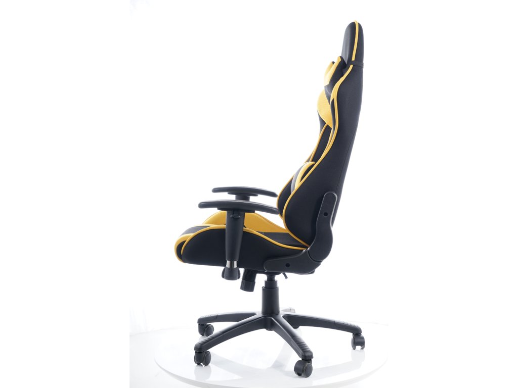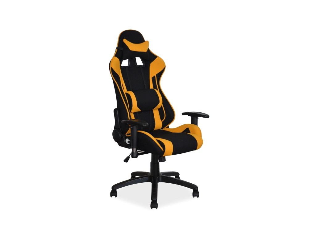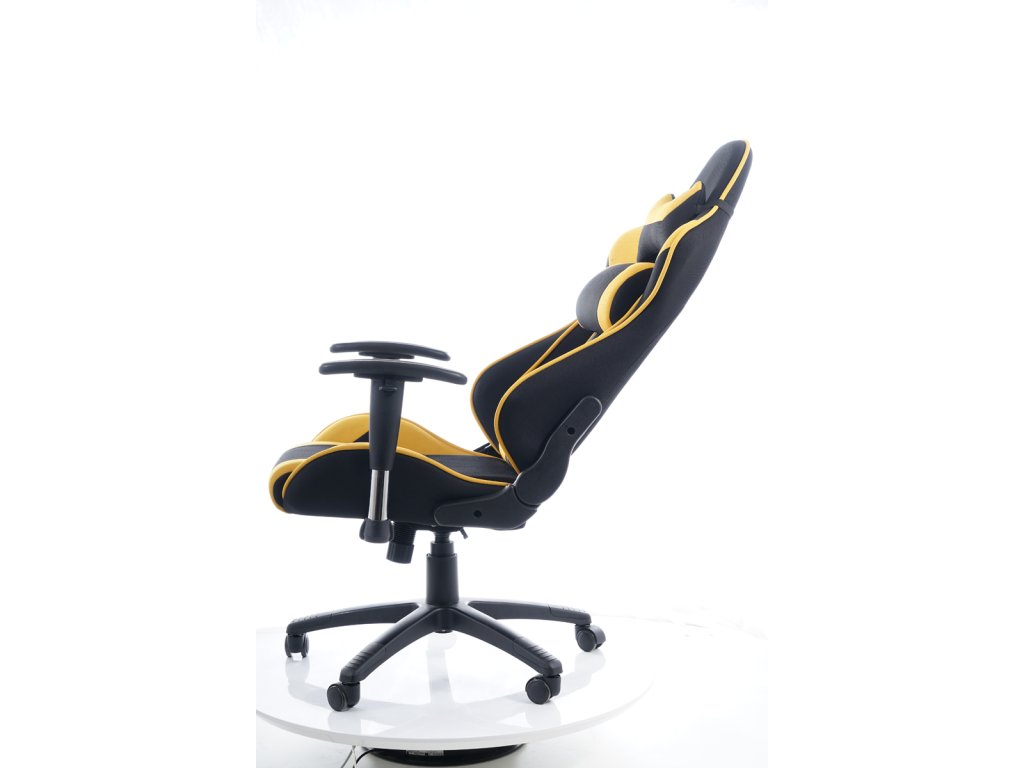 Oblíbené kancelářské křeslo RAVID černo-žluté s přidanou opěrkou hlavy a zádovou opěrkou je křeslem, které zaručuje potřebnou oporu a vysoké pohodlí při sezení. Sedák i opěrka jsou potaženy kvalitní látkou ve žluto-černé barevné kombinaci. Křeslo je dostupné také v dalších barvách. Křeslo disponuje mechanismem TILT, díky kterému si můžete jednoduše nastavit požadovanou výšku sezení, správnou polohu opěrek i sedáku. I područky křesla jsou nastavitelné. Nosný kříž křesla je vyroben z odolného plastu v černé barvě. Kola jsou vyrobena z gumy a tedy vhodná i pro vyšší zátěž. Křeslo lze umístit do pracovny i do studentského pokoje. Rozměry křesla: Celková výška křesla: 127 - 135 cm Výška sezení: 44 - 52 cm Hloubka sedáku: 49 cm Šířka sedáku: 70 cm Nosnost křesla je 140 kg. Dodáváno v demontu v jednom kartonovém obalu.Doplňkové parametry