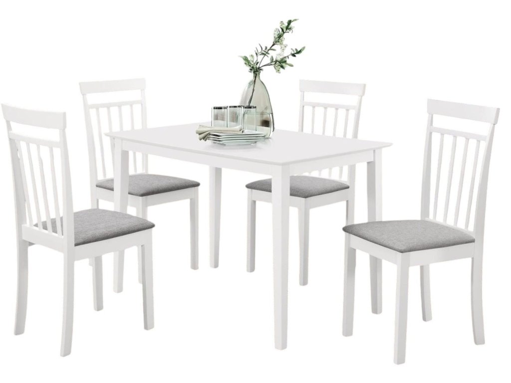 Jídelní sestava je navržena v oblíbeném barevném provedení. Díky jednoduchému designu a neutrální bílé barvě je výjimečný a hodí se do každého interiéru. Pomůže Vám vkusně a jednoduše zařídit jídelnu. Deska stolu je vyrobena z MDF desky dýhované přírodním dřevem.