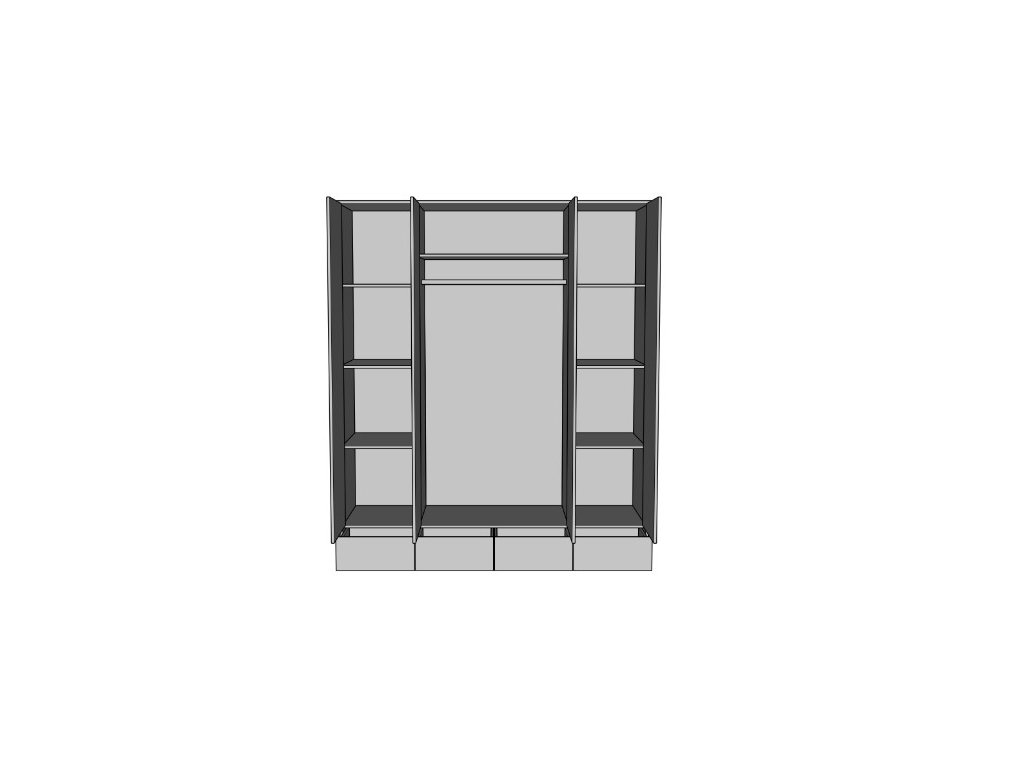 - Úložný prostor: 5 polic, 4 zásuvky, šatní tyč