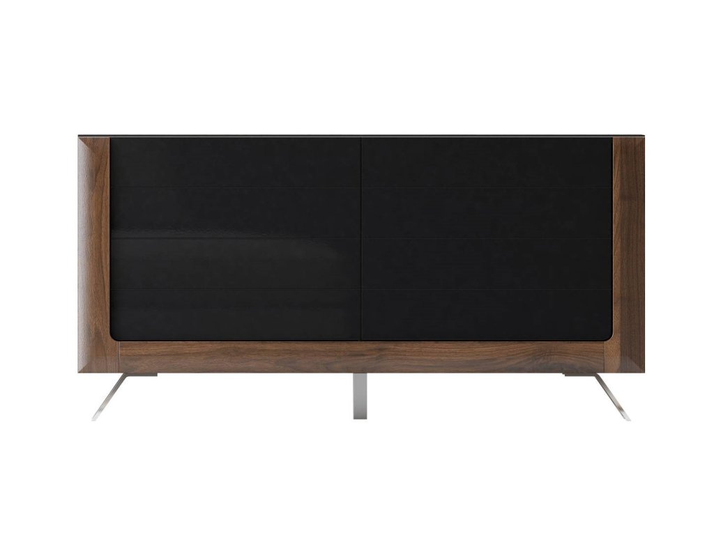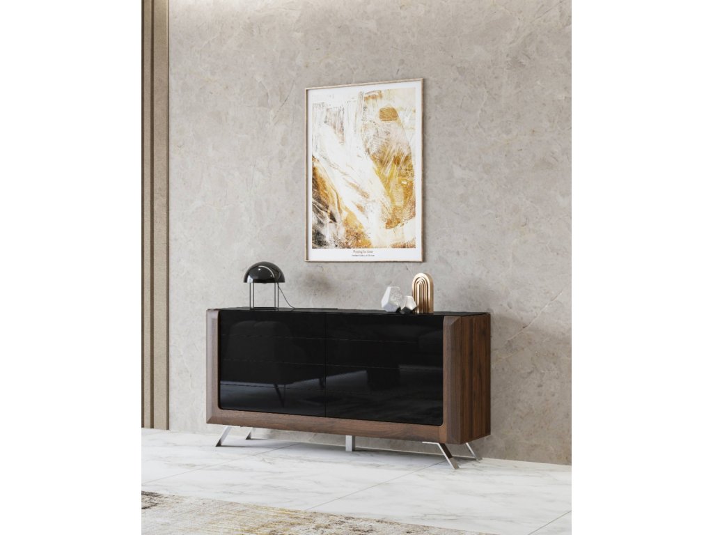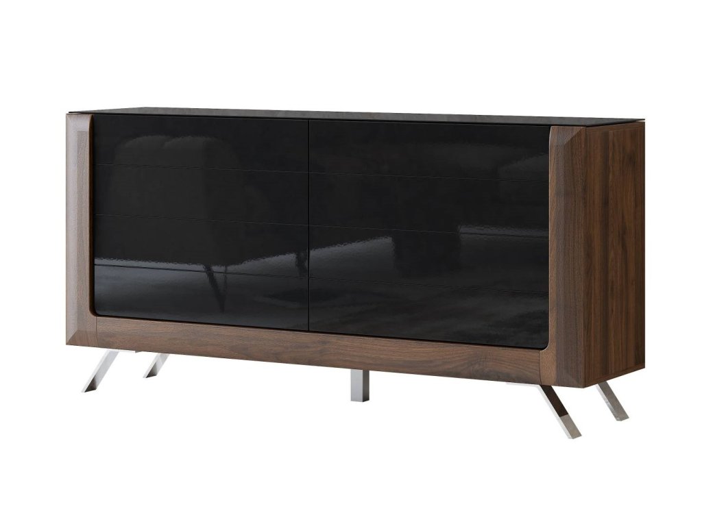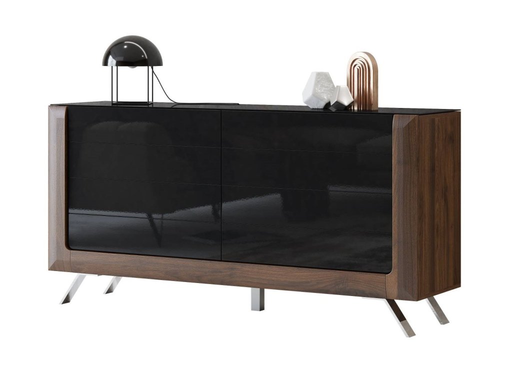 Elegantní komoda KASAJ v ořech Columbia / černý lesk
