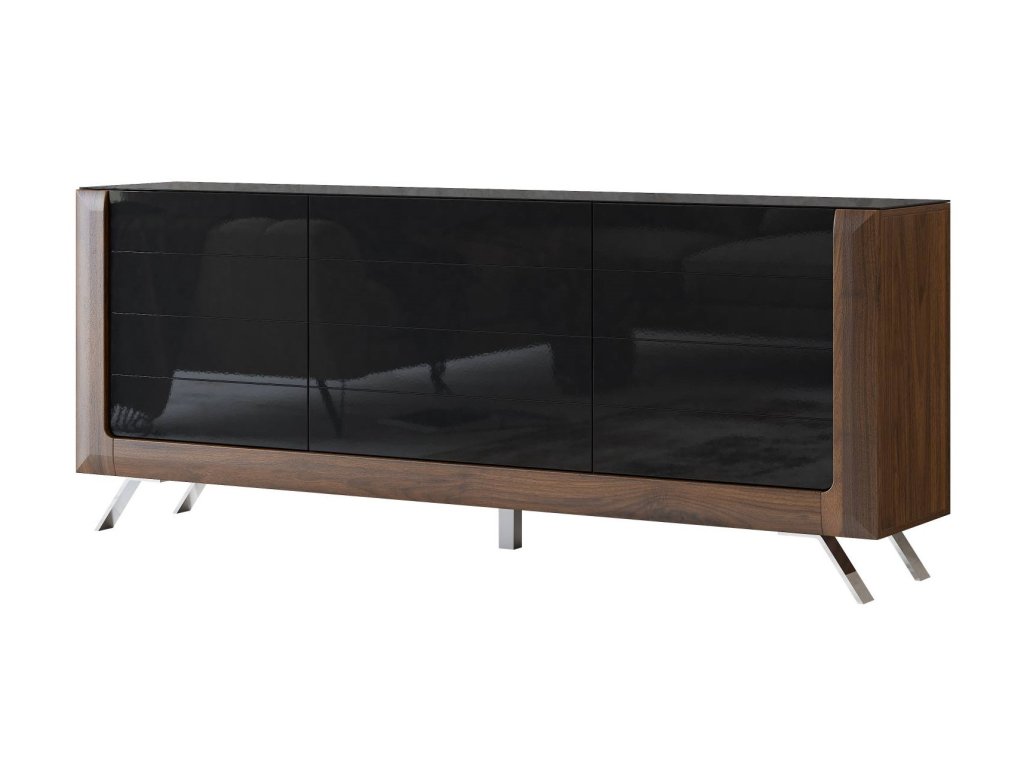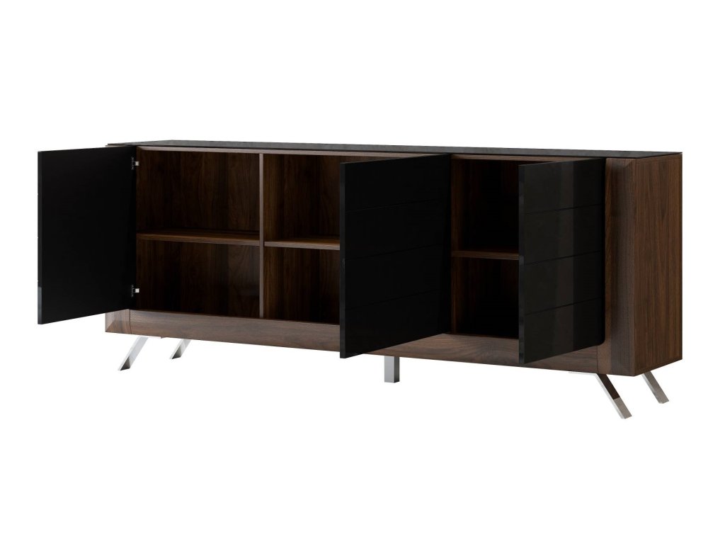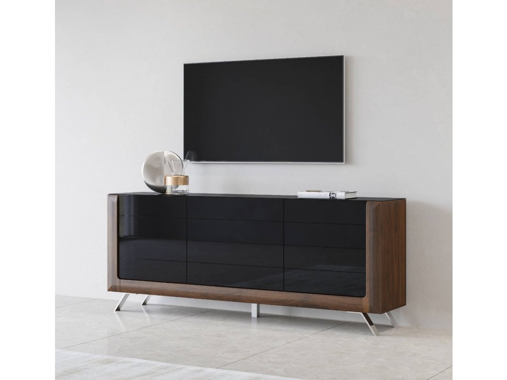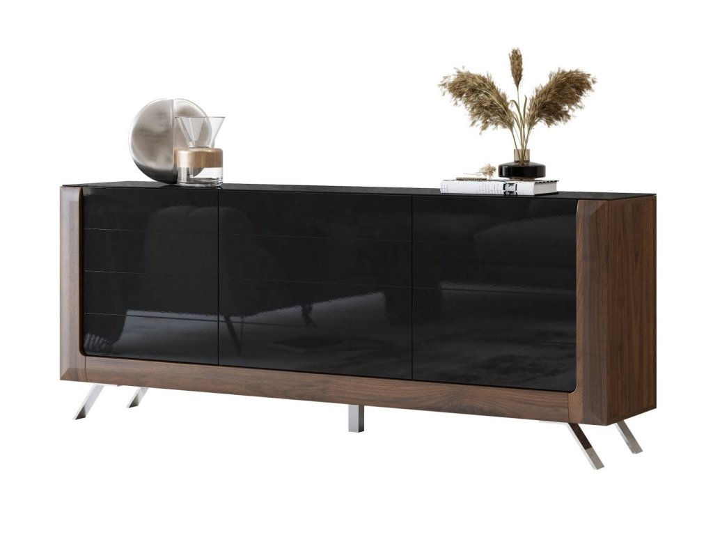 KASAJ široká komoda 3D, ořech Columbia / černý lesk