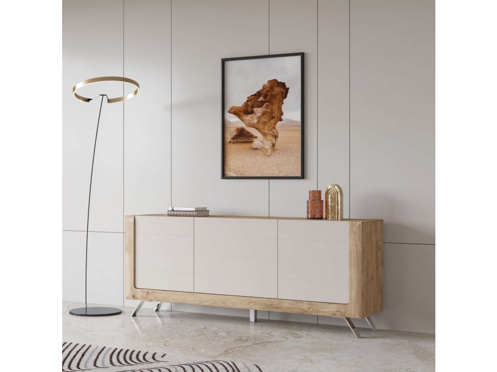 Komoda KASAJ je vybavena 3 dvířky, které poskytují dostatek úložného prostoru pro vaše věci. Ideální pro obývací pokoj, ložnici nebo kancelář. Investujte do kvality a designu s naší komodou KASAJ, která je nejen praktická, ale i esteticky přitažlivá.