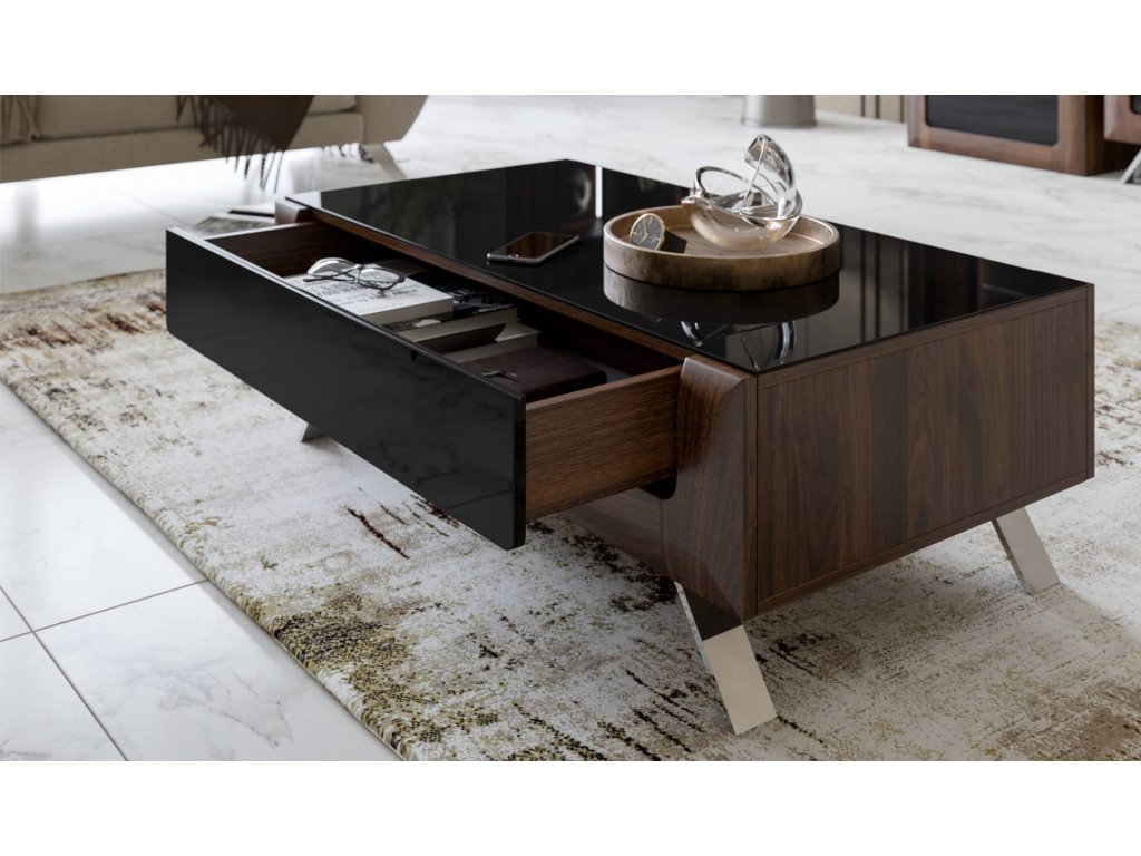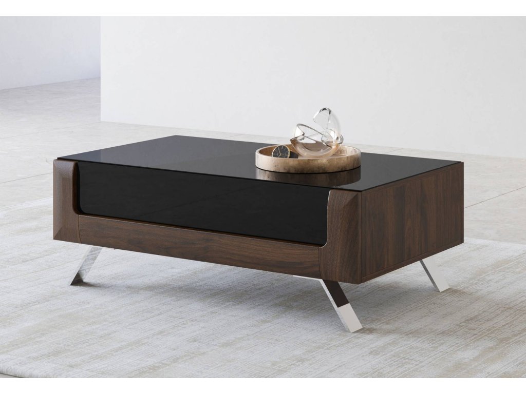 KASAJ konferenční stolek se zásuvkou 1Z, ořech Columbia / černý lesk