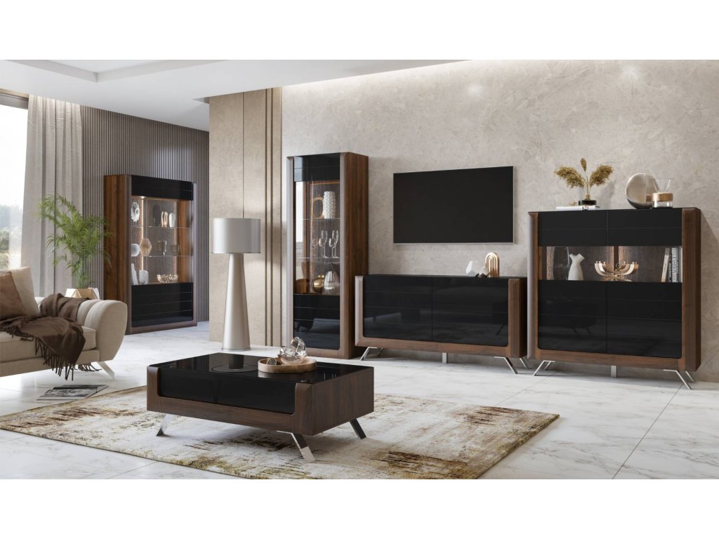 KASAJ stylová obývací sestava, ořech Columbia / černý lesk