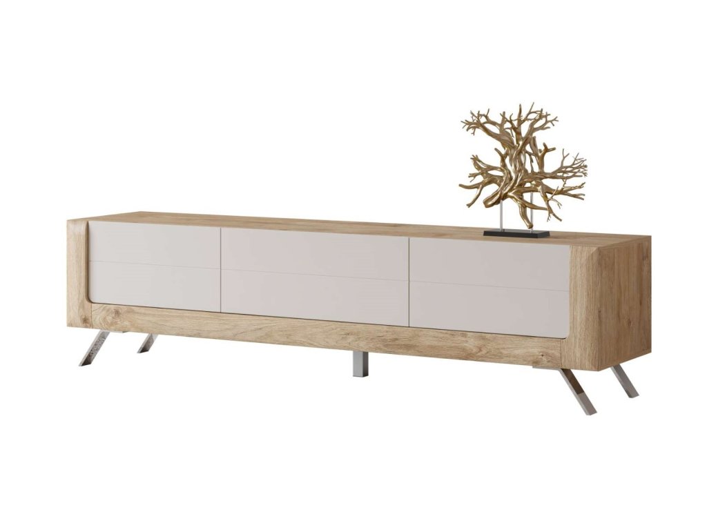 Moderní TV stolek KASAJ v barvě zlatý dub / kašmír mat