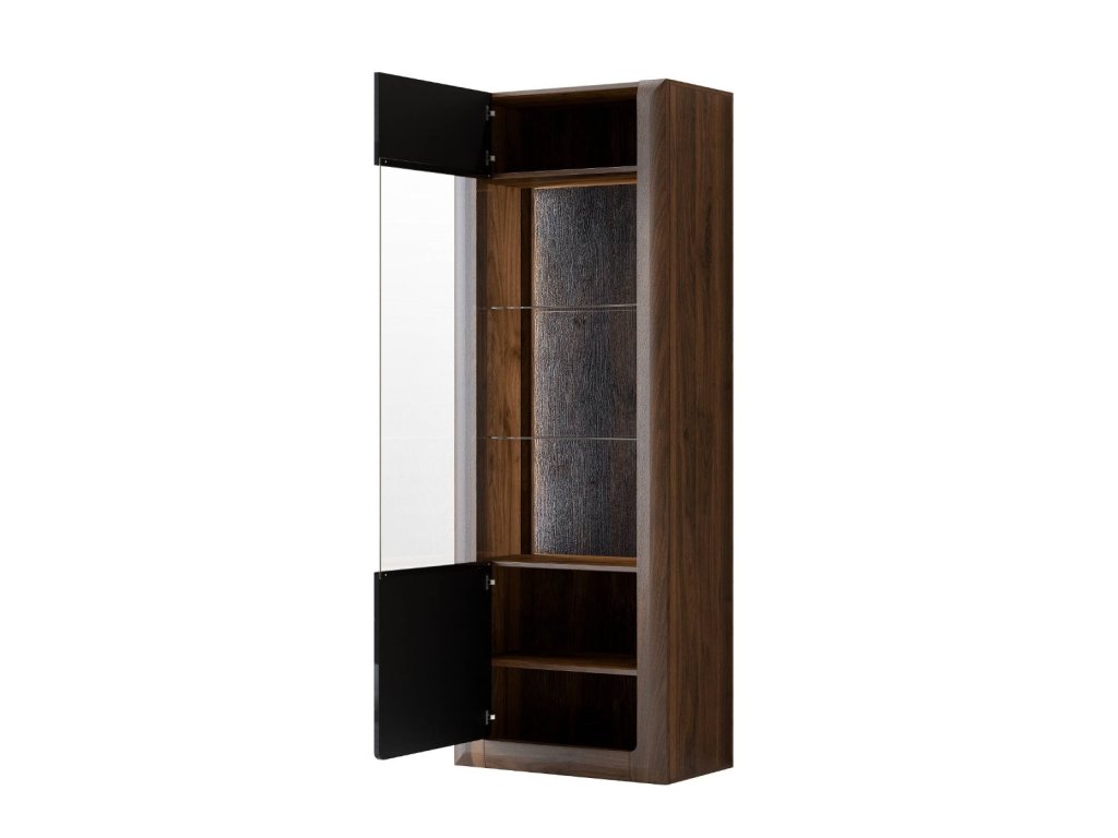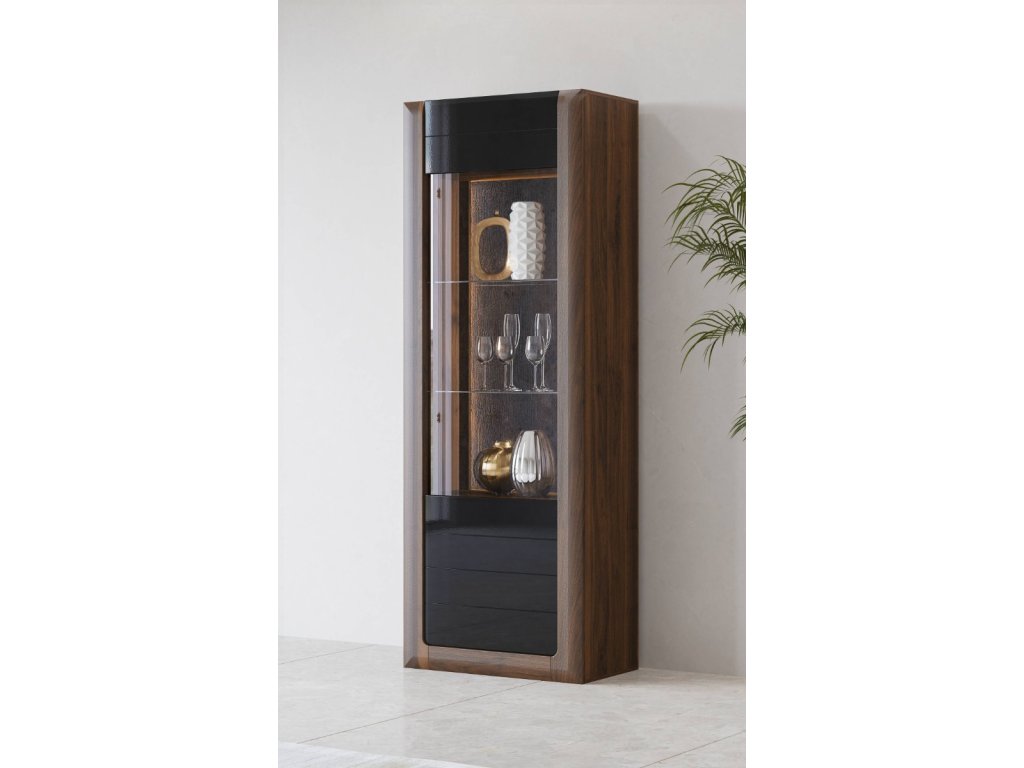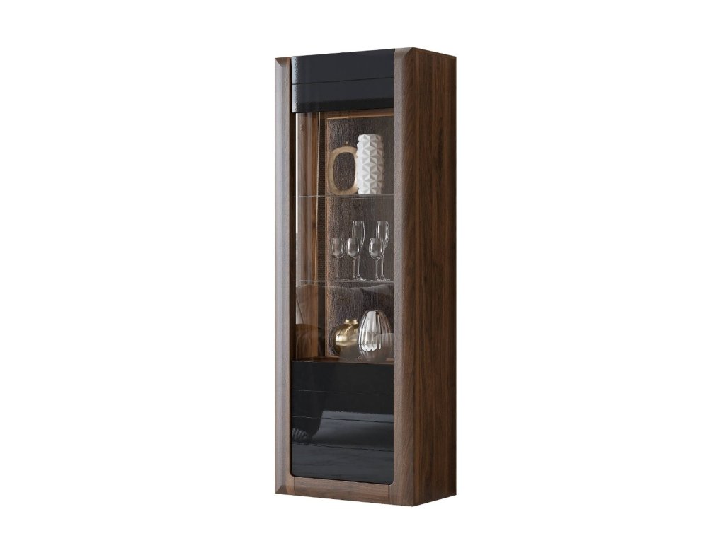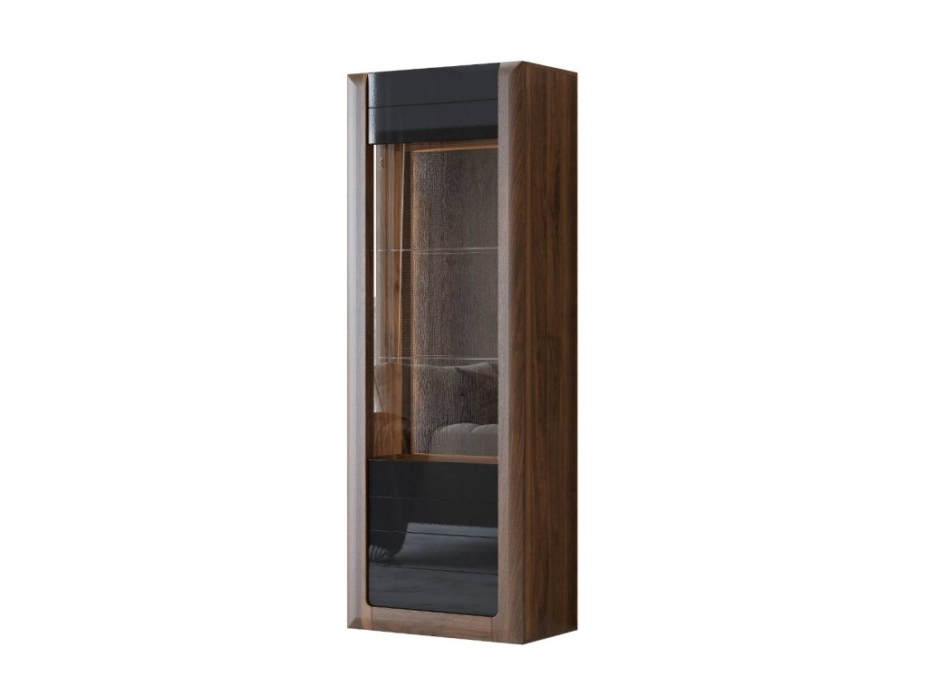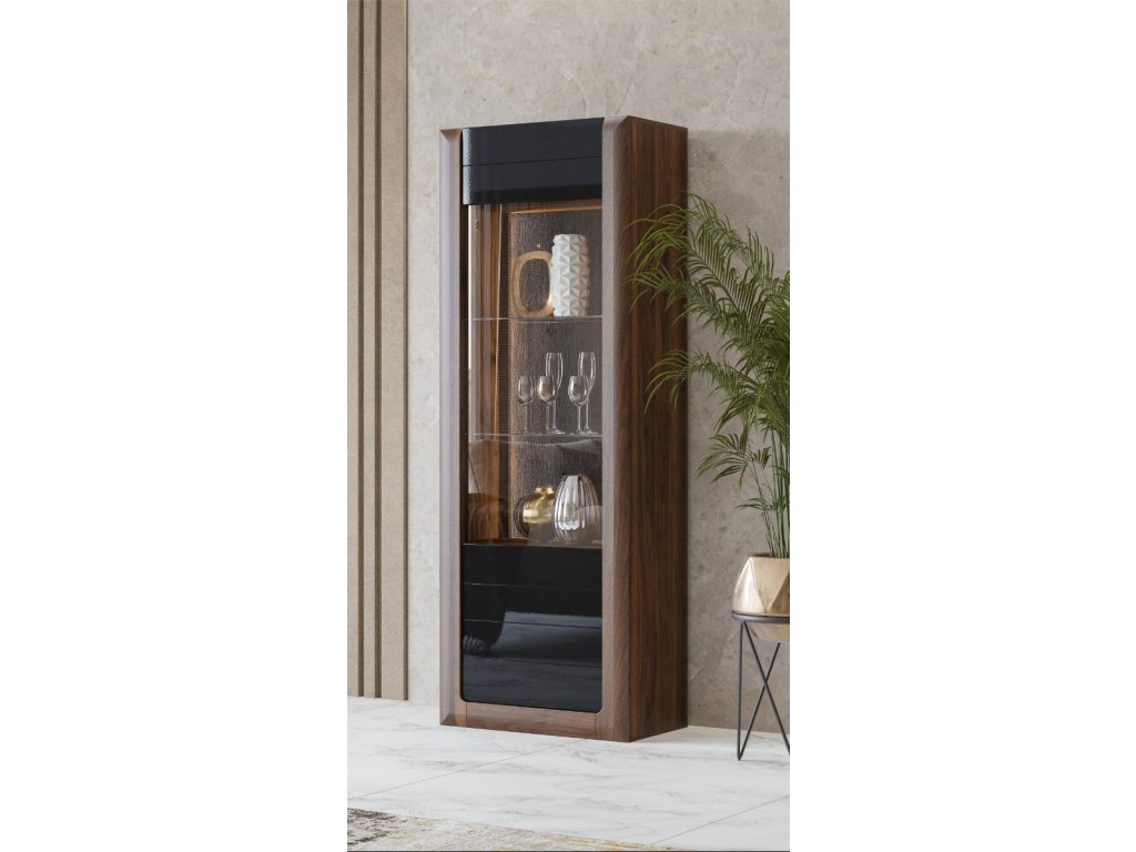 KASAJ vysoká vitrína 1D, ořech Columbia / černý lesk