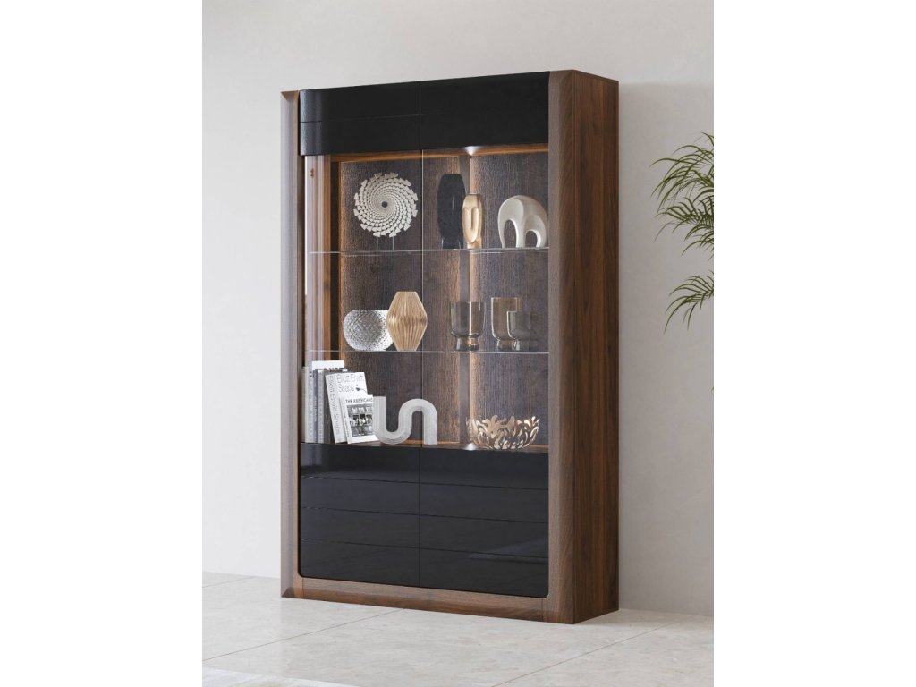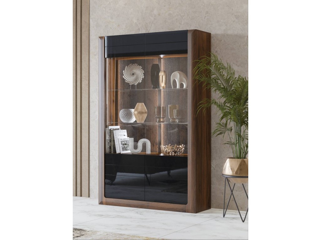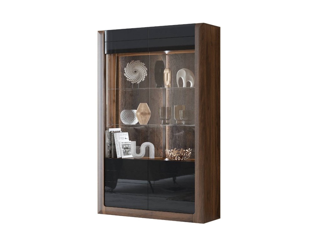 KASAJ vysoká vitrína 2D, ořech Columbia / černý lesk