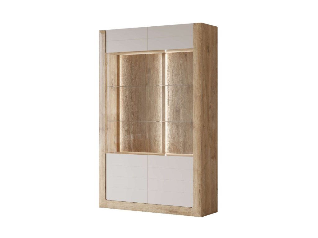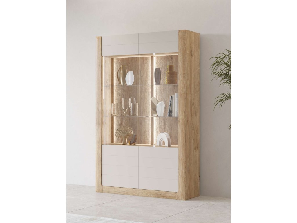 KASAJ vysoká vitrína 2D, zlatý dub / kašmír mat