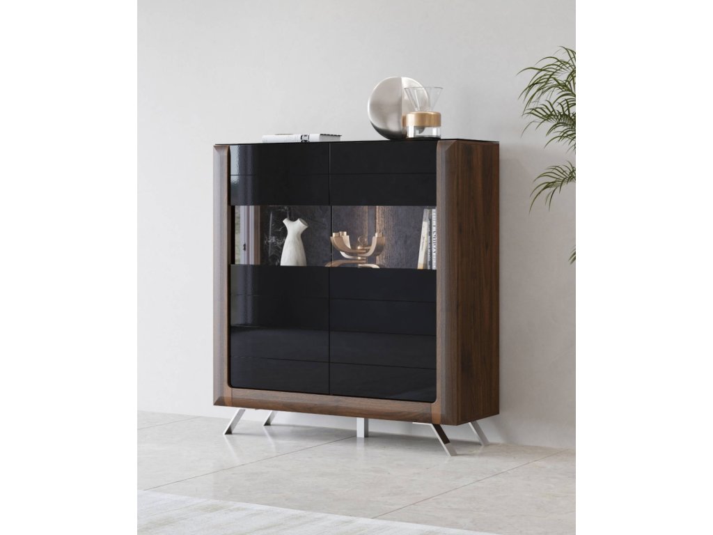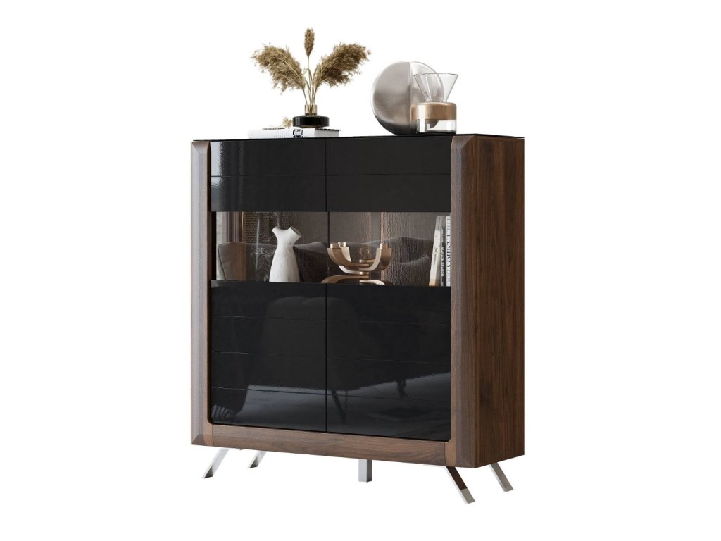 Elegantní vysoká komoda KASAJ v barvě ořech Columbia / černý lesk