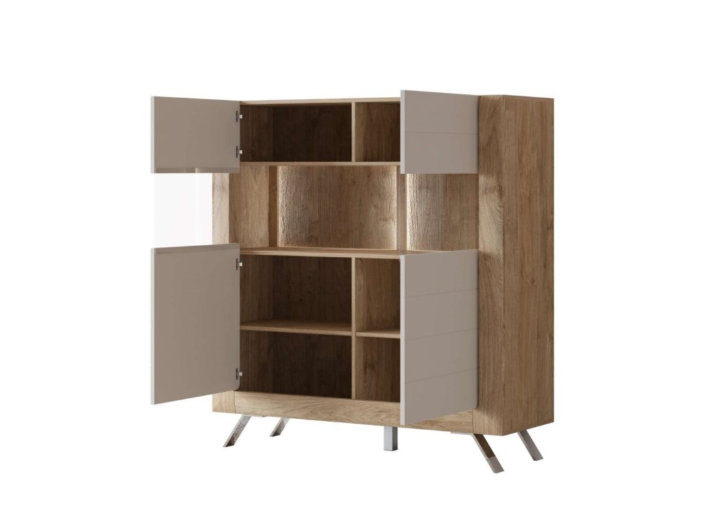 Elegantní vysoká komoda KASAJ v barvě zlatý dub / kašmír mat