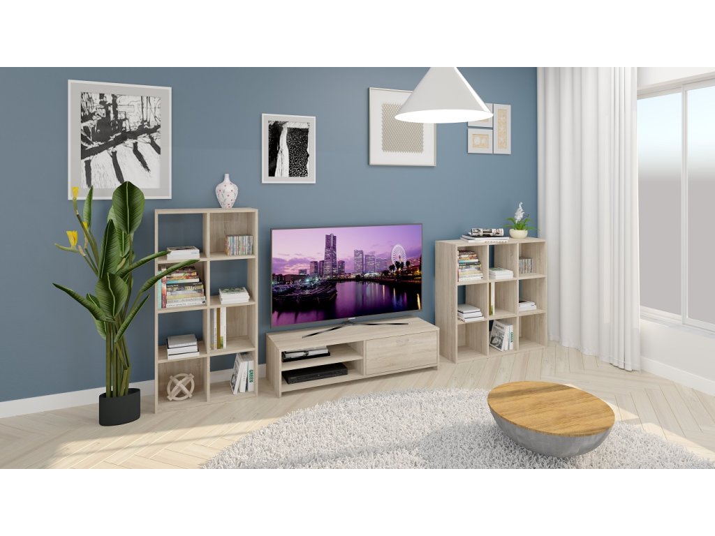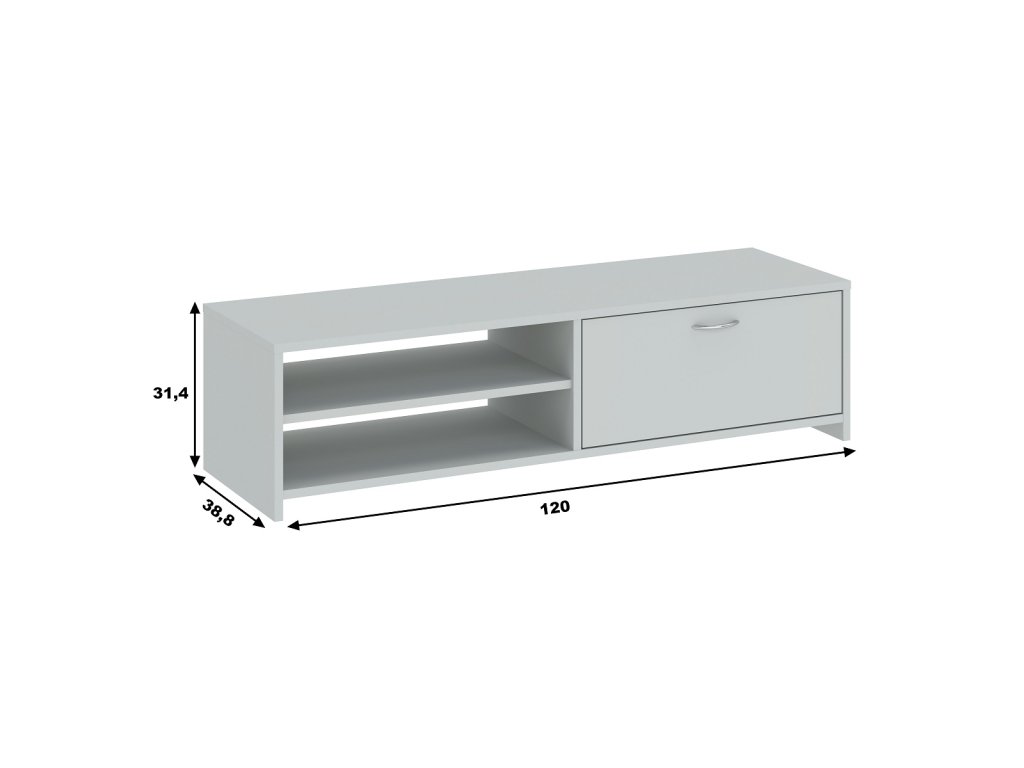 Televizní stolek je vyroben z kvalitních LTD desek. Jsou nenáročné na údržbu. Televizní stolek disponuje otevřeným úložným prostorem a jedněmi výklopnými dvířky.