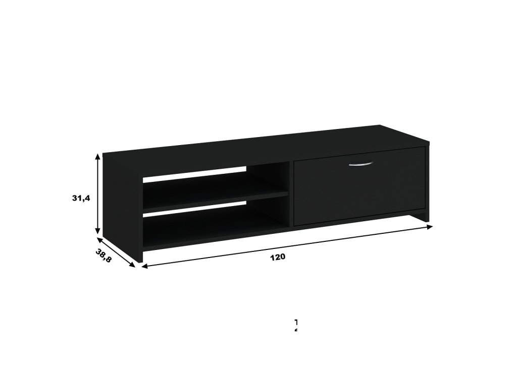 Televizní stolek je vyroben z kvalitních LTD desek. Jsou nenáročné na údržbu. Televizní stolek disponuje otevřeným úložným prostorem a jedněmi výklopnými dvířky.