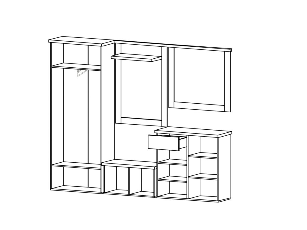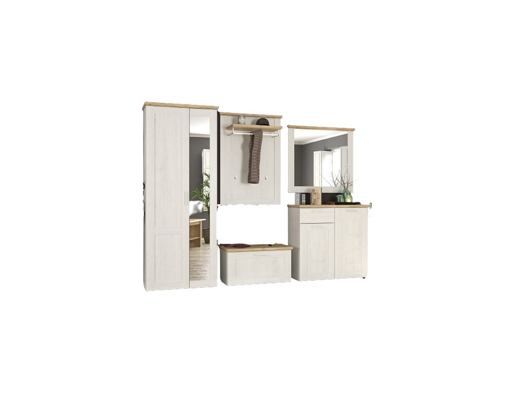 | Sestava obsahuje: | Zrcadlo (š,v,h): 93 x 83 x 5, komoda: 93 x 91 x 39, věšák: 78 x 109 x 29, botník: 93 x 43 x 39, skříň: 78 x 199 x 39 cm. |