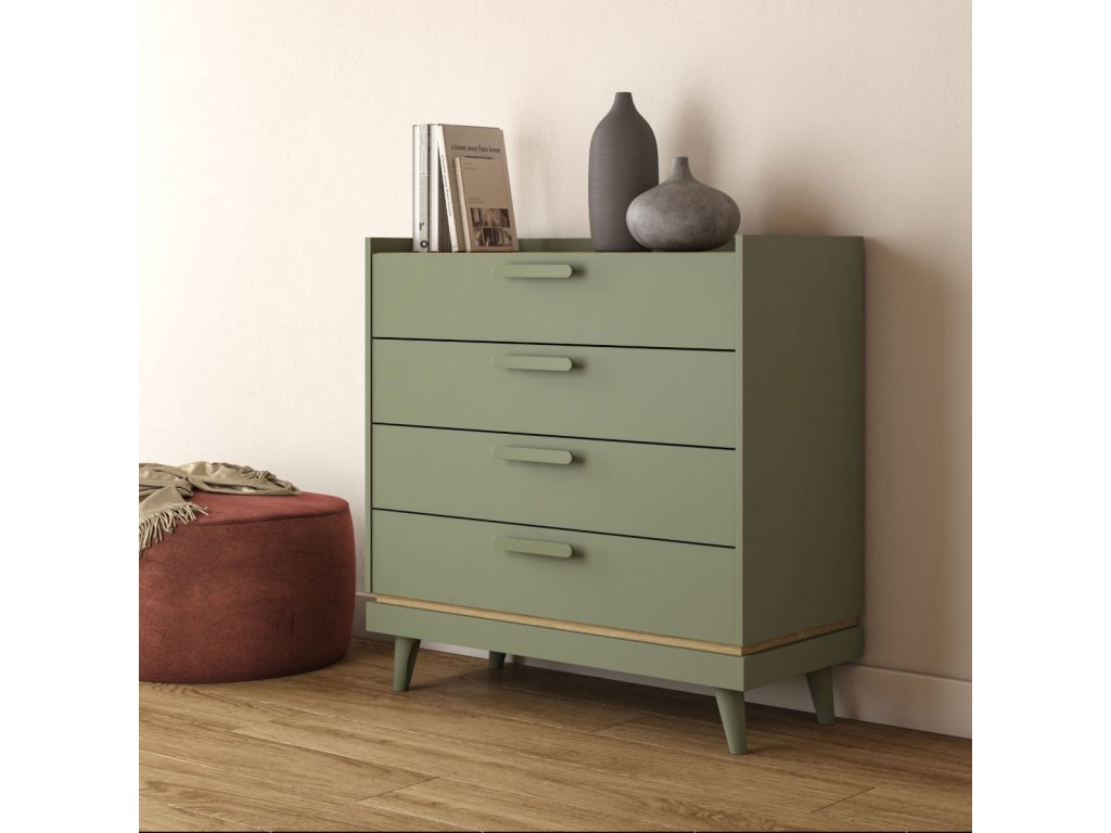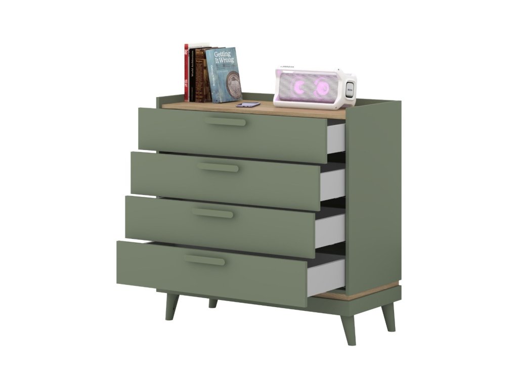 KENDY komoda 4S, tlumená zelená/dub