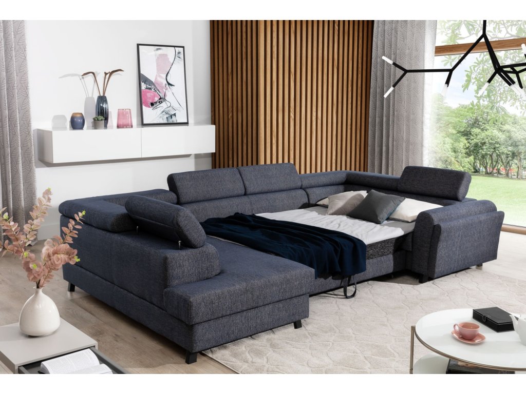 Sedací souprava je multifunkční kus nábytku, protože kromě prostorné sedačky k relaxaci během dne ji lze využít i jako místo k regeneraci a odpočinku v noci. Díky mechanismu typu delfín - snadno a rychle přeměníme každodenní pohovku na pohodlnou postel o rozměrech 110 x 250 cm.