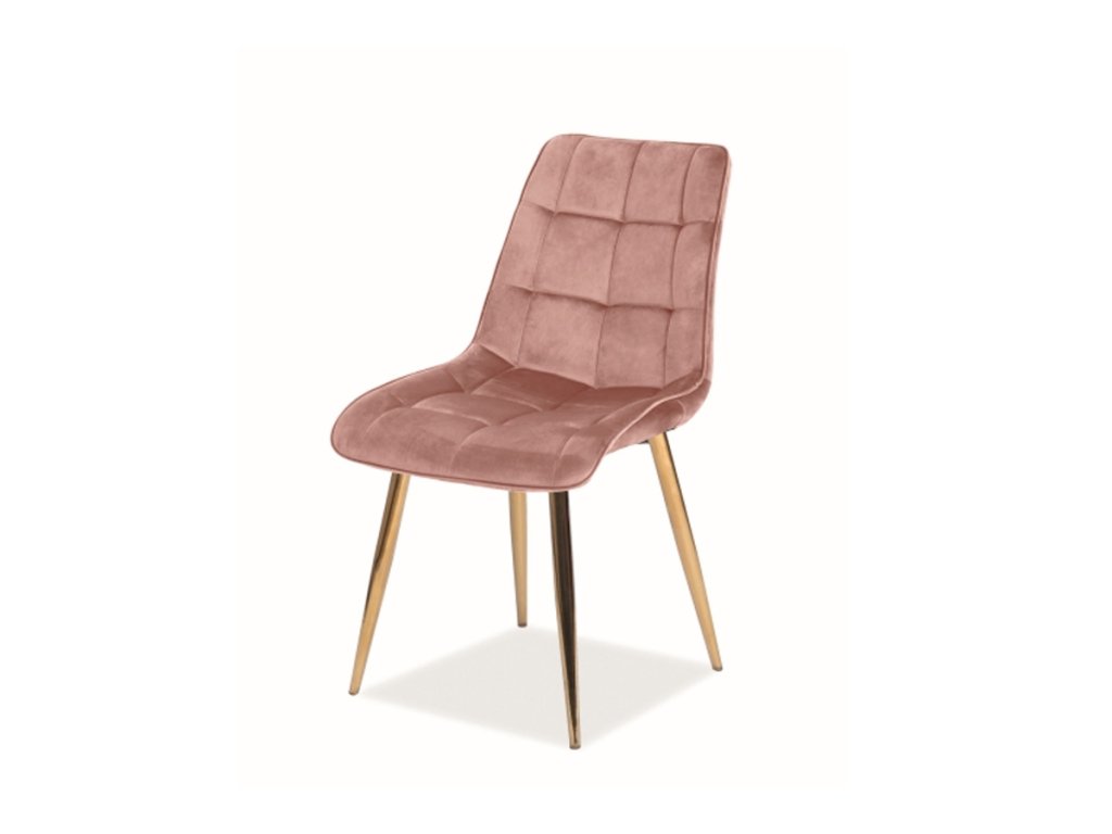 KIK je moderní židle, vhodná do jídelny i kuchyně. Své místo si však najde také v restauraci či kafeterii. Design židle zvýrazňuje její sametové provedení a efektní prošití čalouněných částí. Pro pohodlné sezení má židle čalouněný sedák i opěrku. Konstrukce židle je kovová, ve zlaté barvě. Sedací a opěrková část je čalouněna kvalitní sametovou látkou BLUVEL 52 v barevném odstínu antická růžová Rozměry židle: Celková výška židle: 89 cm Výška sedáku: 49 cm Hloubka: 44 cm Šířka: 51 cm Dodáváno v demontu. Židle je dostupná iv dalších barvách.Doplňkové parametry