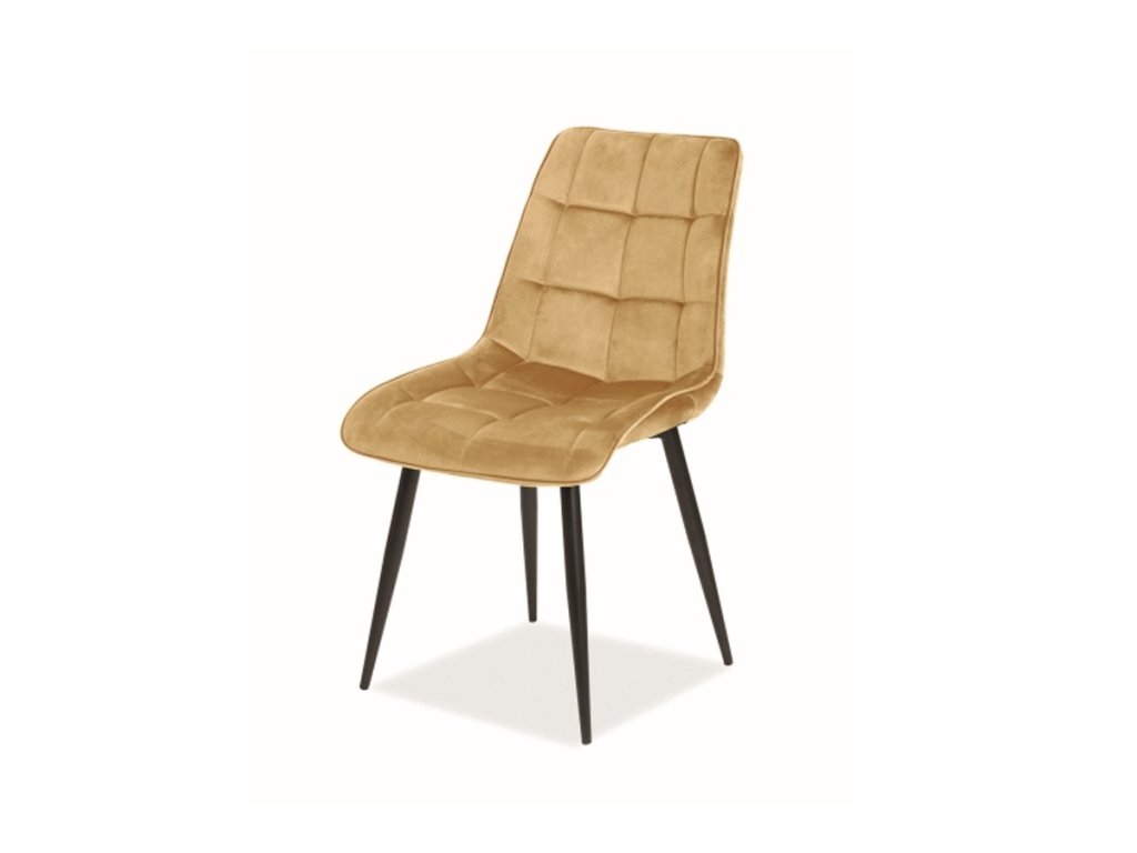 KIK je moderní židle, vhodná do jídelny i kuchyně. Své místo si však najde také v restauraci či kafeterii. Design židle zvýrazňuje její sametové provedení a efektní prošití čalouněných částí. Pro pohodlné sezení má židle čalouněný sedák i opěrku. Konstrukce židle je kovová, v černé barvě. Sedací a opěrková část je čalouněna kvalitní sametovou látkou BLUVEL 68 ve žlutém barevném odstínu. Rozměry židle: Celková výška židle: 89 cm Výška sedáku: 49 cm Hloubka: 44 cm Šířka: 51 cm Dodáváno v demontu. Židle je dostupná iv dalších barvách.Doplňkové parametry