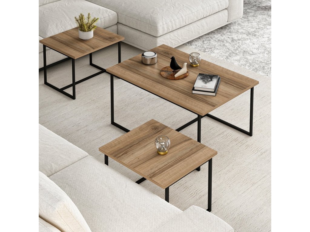 Tyto vkládací stolky, vyrobené ze 100% dřevotřísky s melaminovým povlakem, jsou navrženy tak, aby vydržely. Odolná a robustní konstrukce zajišťuje, že vydrží každodenní používání, aniž by ztratily své kouzlo. Ořechová barva dodá vašemu interiéru teplý a příjemný nádech a váš prostor bude působit útulně a příjemně.