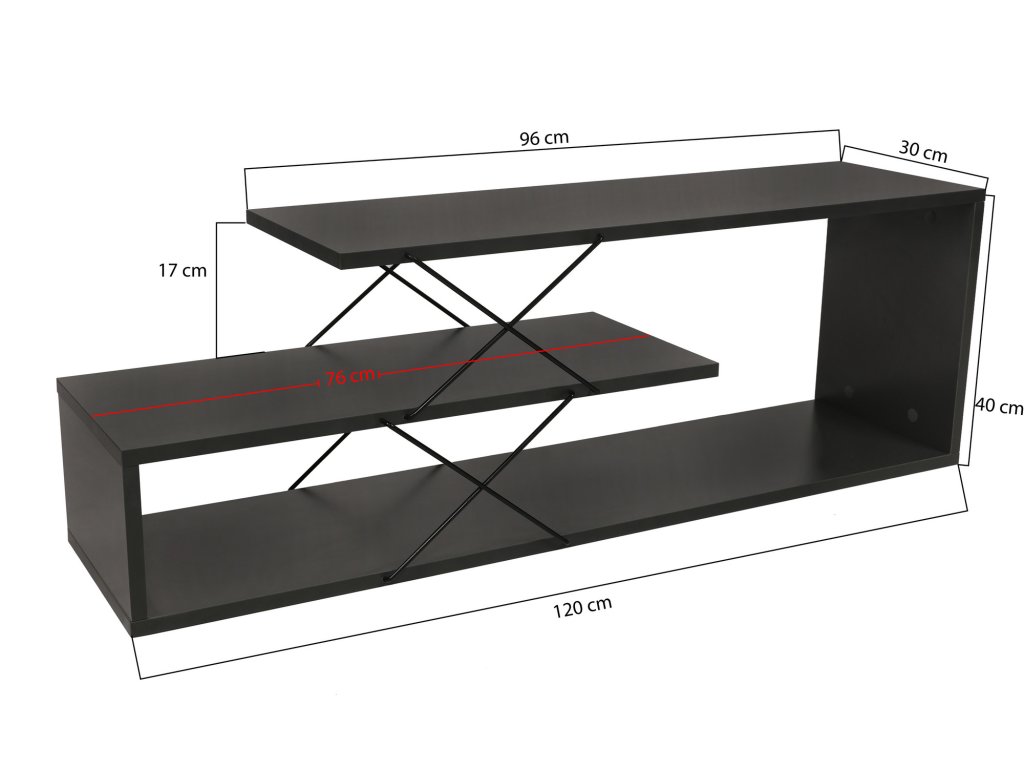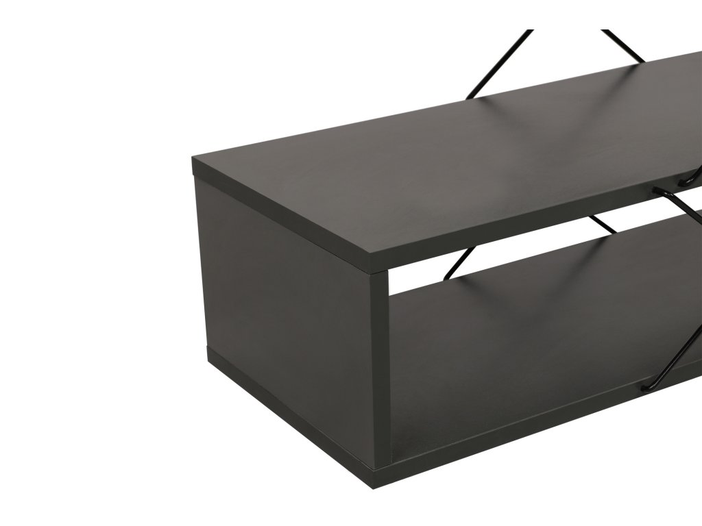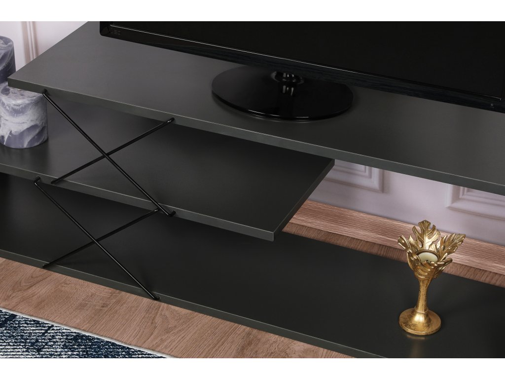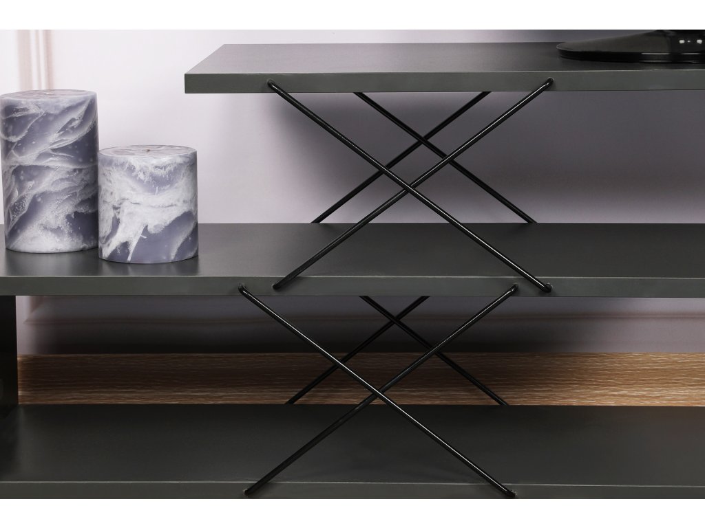 Díky industriálně inspirovanému designu je náš televizní stolek perfektním doplňkem vašeho domova. Jeho antracitová barva dodává moderní nádech, zatímco četné police poskytují dostatek úložného prostoru pro vaše mediální zařízení, DVD a další nezbytnosti. Udržujte svůj obývací pokoj organizovaný a bez nepořádku s tímto stylovým a funkčním kusem nábytku.