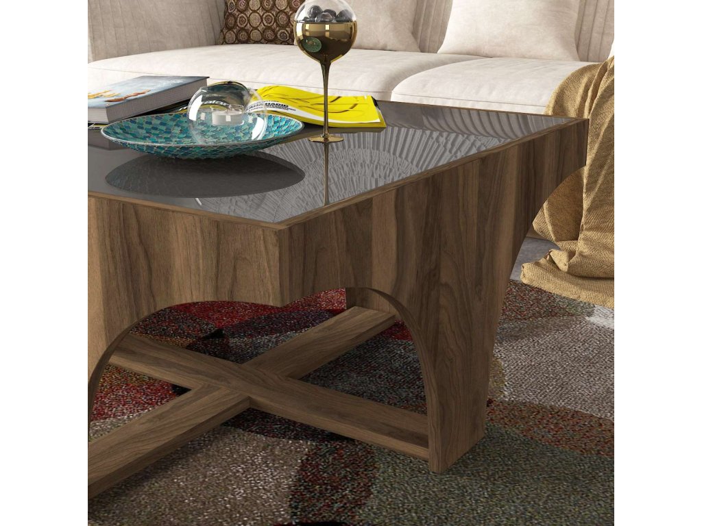Konferenční stolek KLITUS je ideální volbou pro ty, kteří hledají moderní a funkční nábytek s luxusním nádechem. Jeho ořechová barva a kombinace skla přinášejí do vašeho domova svěžest a moderní styl, zatímco poskytují dostatek úložného prostoru pro všechny vaše potřeby.