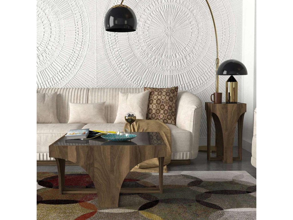 Představujeme KLITUS, konferenční stolek, který přináší do vašeho obývacího pokoje eleganci a luxus. Tento stylový nábytek v ořechové barvě je navržen tak, aby poskytoval praktické a estetické řešení pro vaše potřeby.
