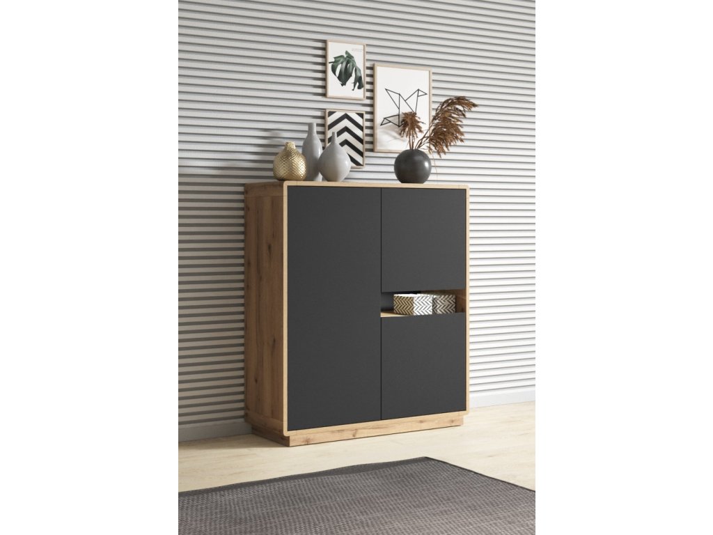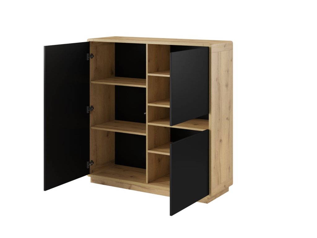 Komoda ARTON 42 má troje dvířka za kterými se nacházejí police a jednu otevřenou polici kde si můžete uložit dekorace.