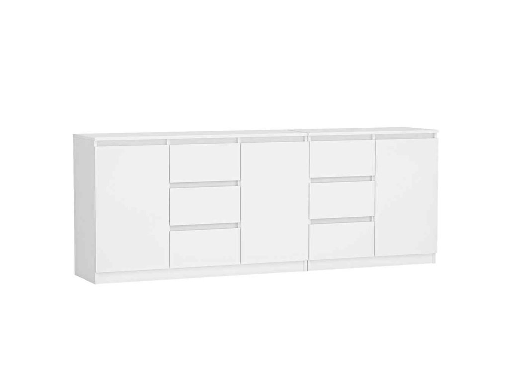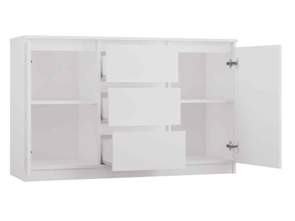 Tato komoda je vybavena třemi plnými dveřmi, šesti a více zásuvkami a dvěma policemi, což poskytuje bohatý prostor pro uspořádání a uložení všeho, od oblečení po knihy a dekorace. Její flexibilní využití a elegantní design ji činí nepostradatelnou součástí vašeho domova.